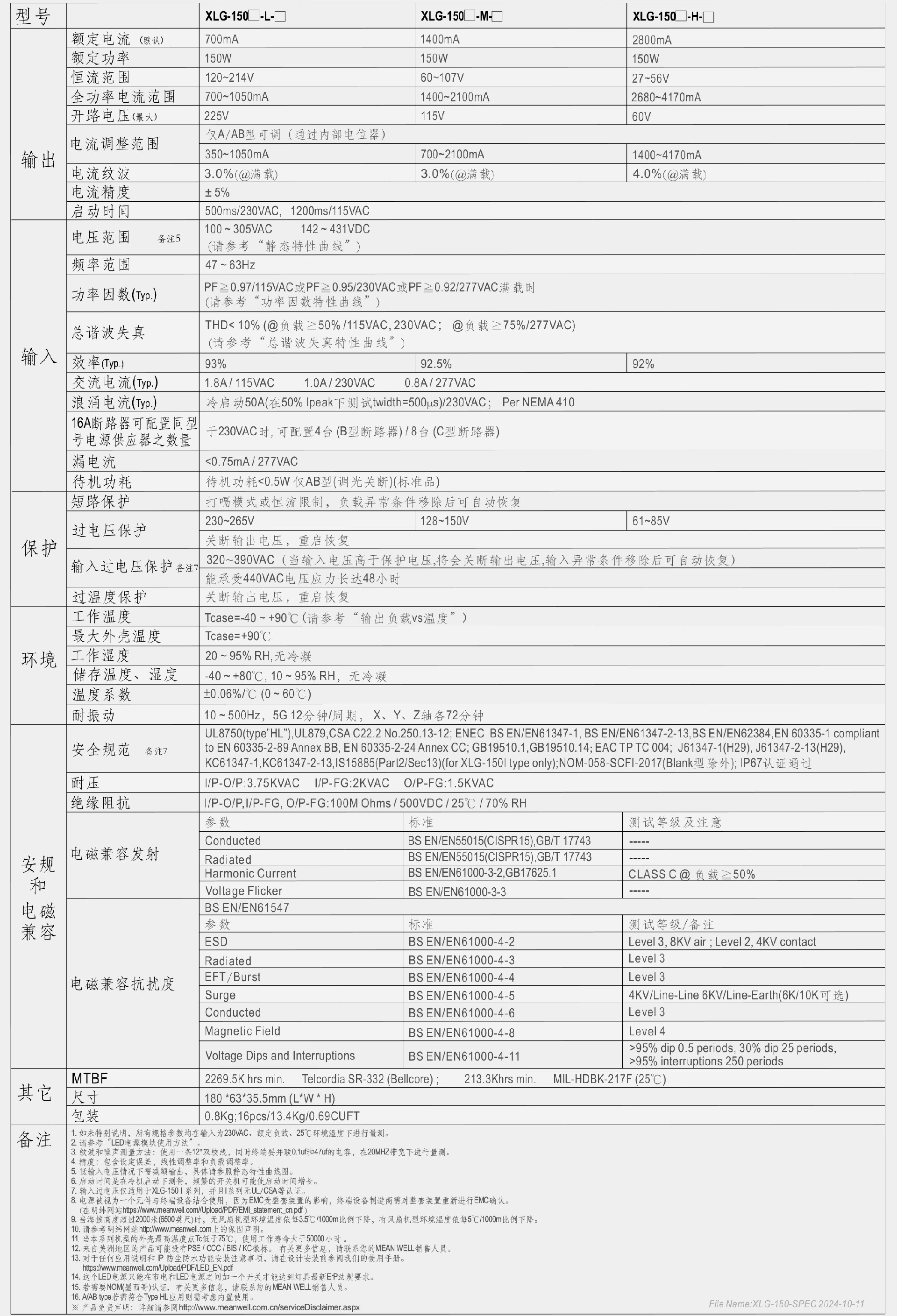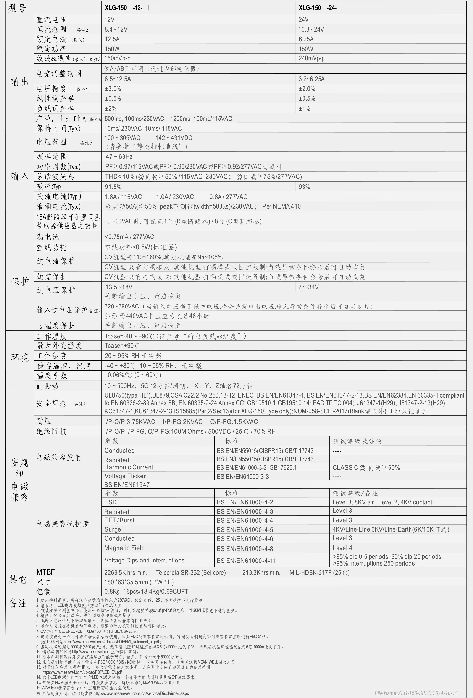 明緯XLG-150系列150W恒壓+恒流LED驅(qū)動(dòng)器