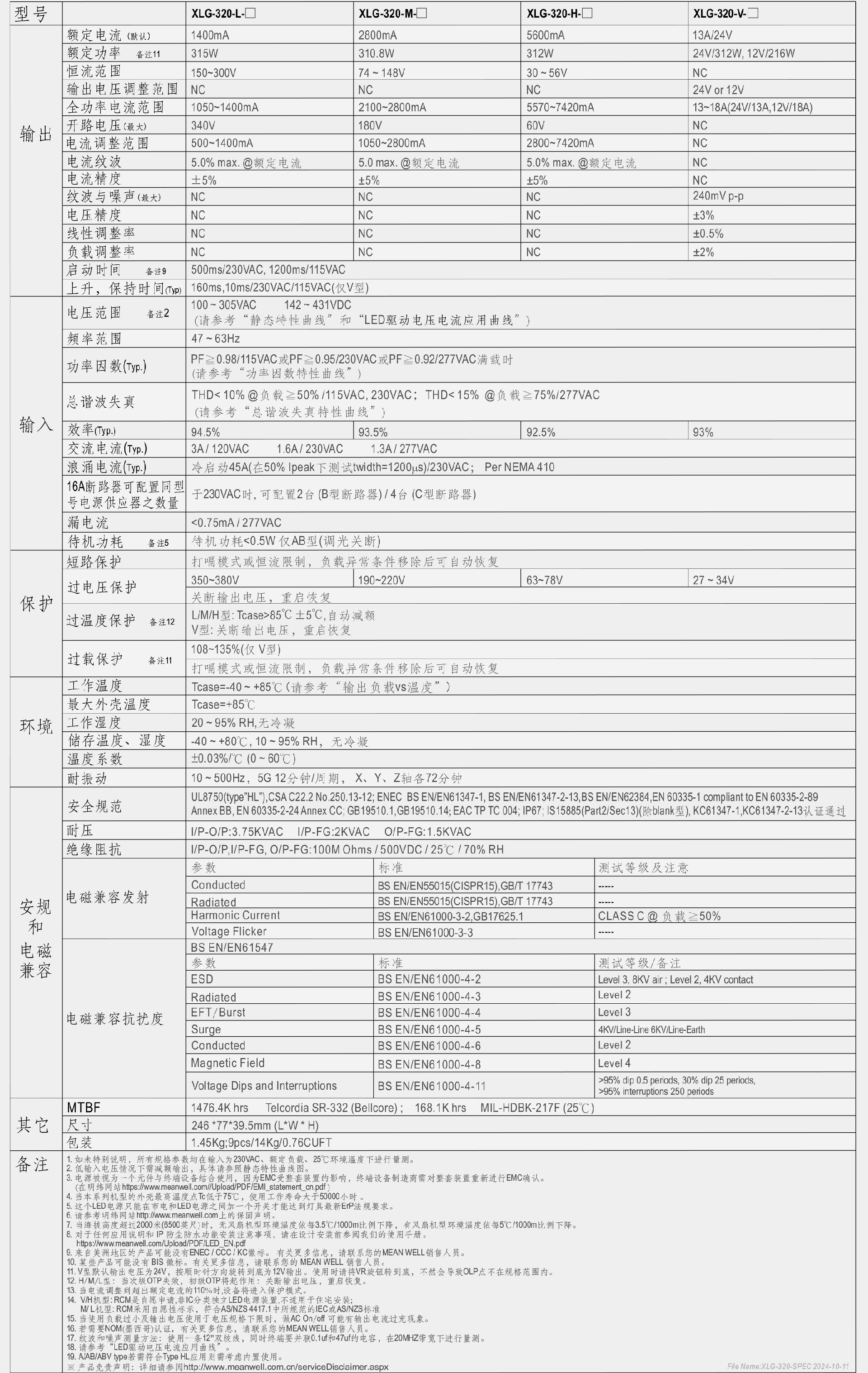 XLG-320系列是一款具有恒功率特性的315W交流轉直流LED電源供應器。此系列機型可工作于120-305VAC輸入電壓,并有1050mA-7420mA輸出額定電流的多種機型。因具有最高可達94.5%轉換效率,采用無風扇設計,并可在-40℃~+85℃的寬范圍機殼溫度下工作。金屬外殼以IP67高防護等級的設計,使得XLG-320能夠適應室內(nèi)和戶外的應用。此外,創(chuàng)新的設計與小巧的只寸使得此系列機型能夠可靠地點亮LED燈,適用于幾乎所有可安裝LED燈具的場所中的各種應用環(huán)境。XLG-320符合最新版IEC61347/GB19510.1和UL8750等安全要求。輸出與調(diào)光線路均符合最新的隔離設計要求,保障用戶與燈具系統(tǒng)在使用中的安全。