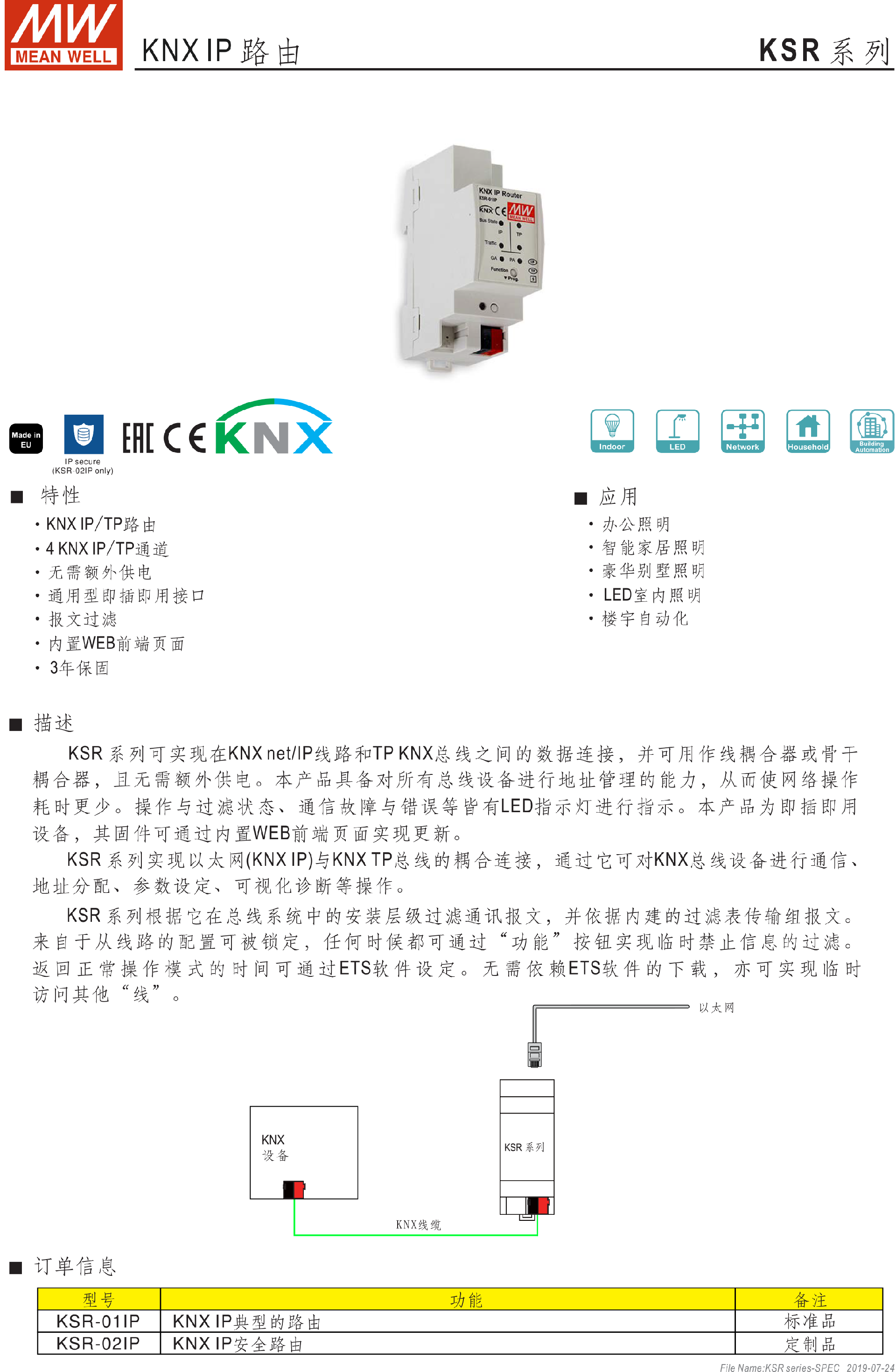 臺(tái)灣明緯KNX IP路由器KSR-01IP