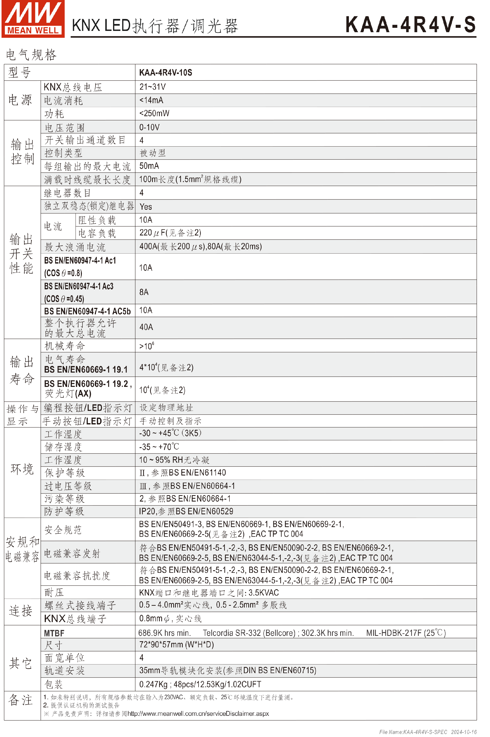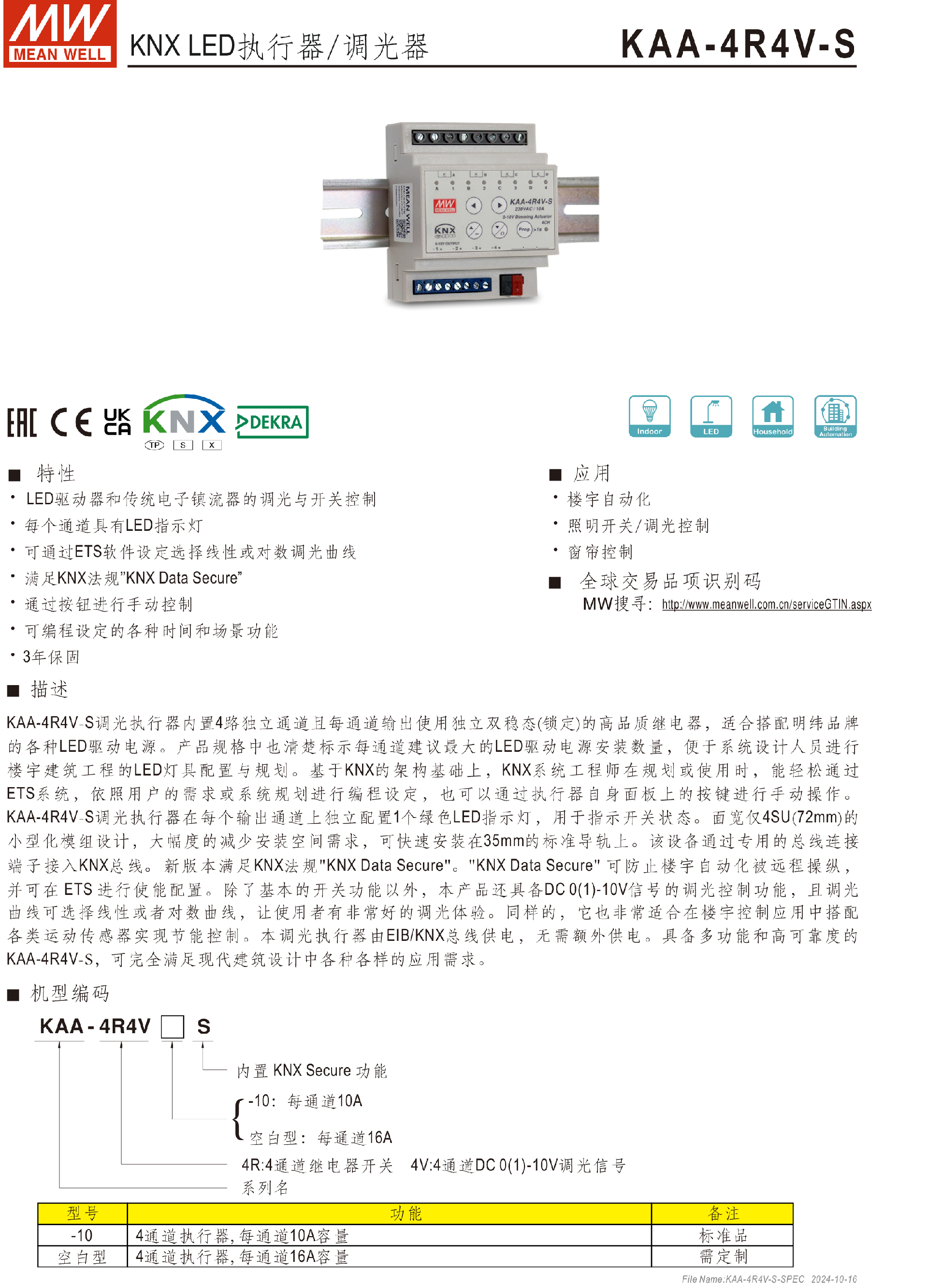 臺(tái)灣明緯KNX LED執(zhí)行器/調(diào)光器KAA-4R4V-10S-KAA系列-東莞市誠緯實(shí)業(yè)有限公司-