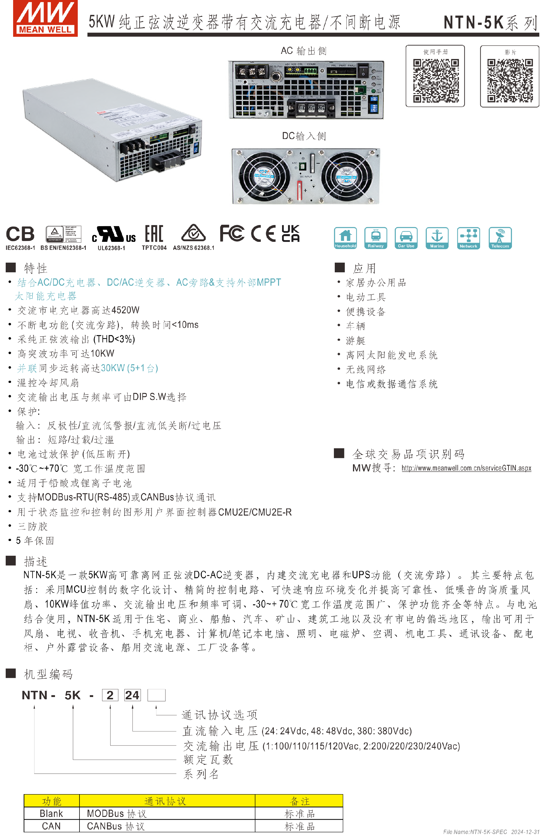 臺(tái)灣明緯NTN-5K系列5KW純正弦波逆變器-NTN 系列-東莞市誠(chéng)緯實(shí)業(yè)有限公司-