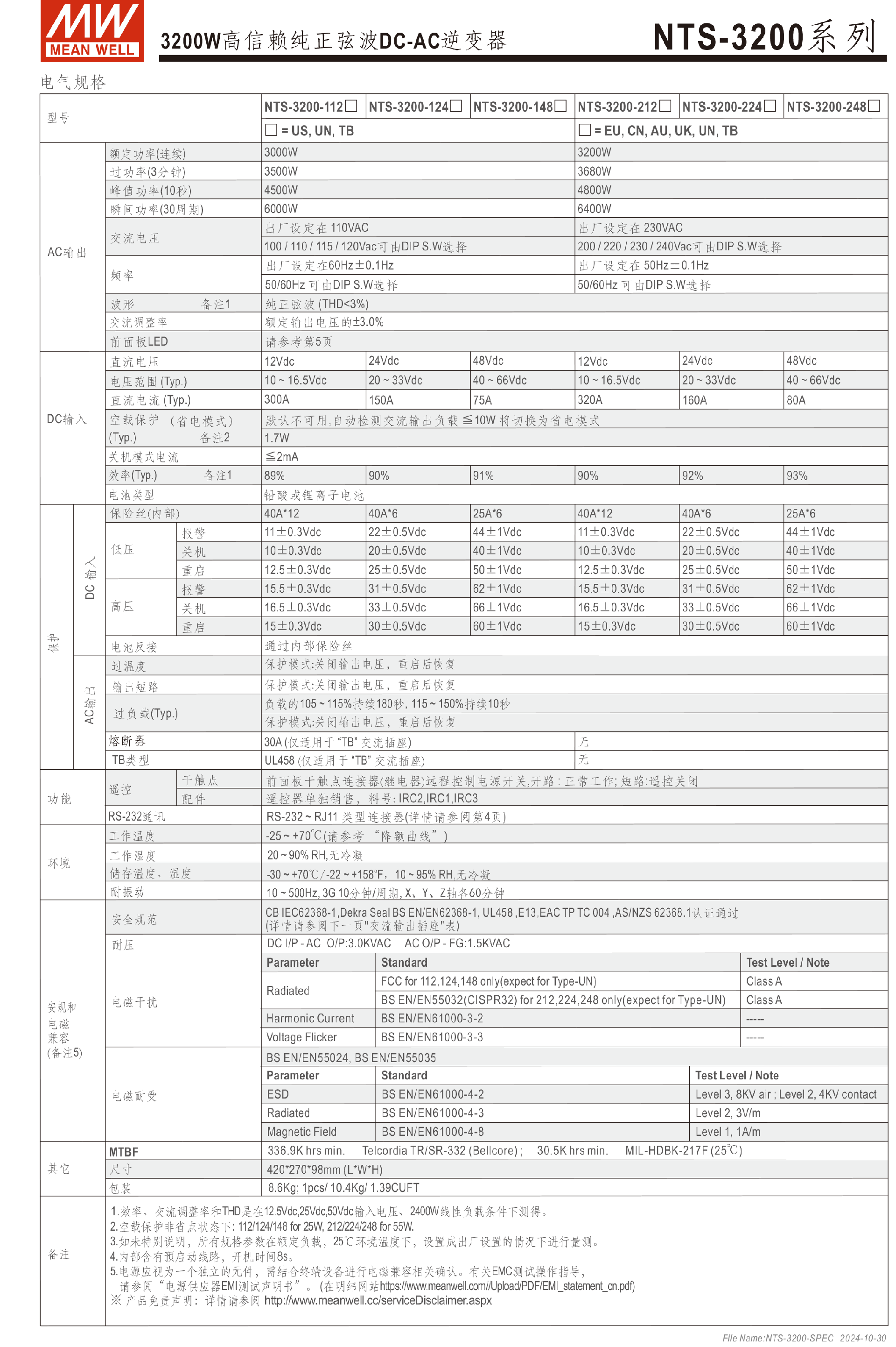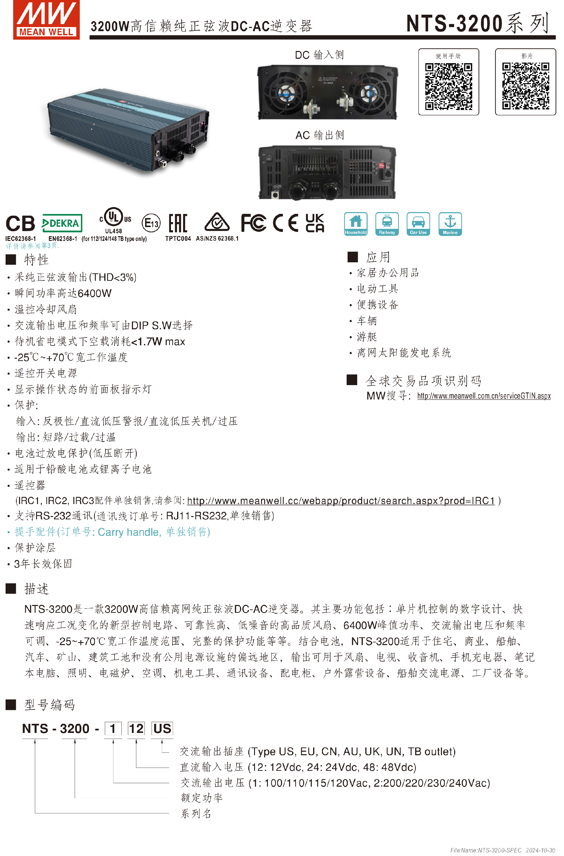 臺(tái)灣明緯NTS-1200系列DC-AC逆變器
