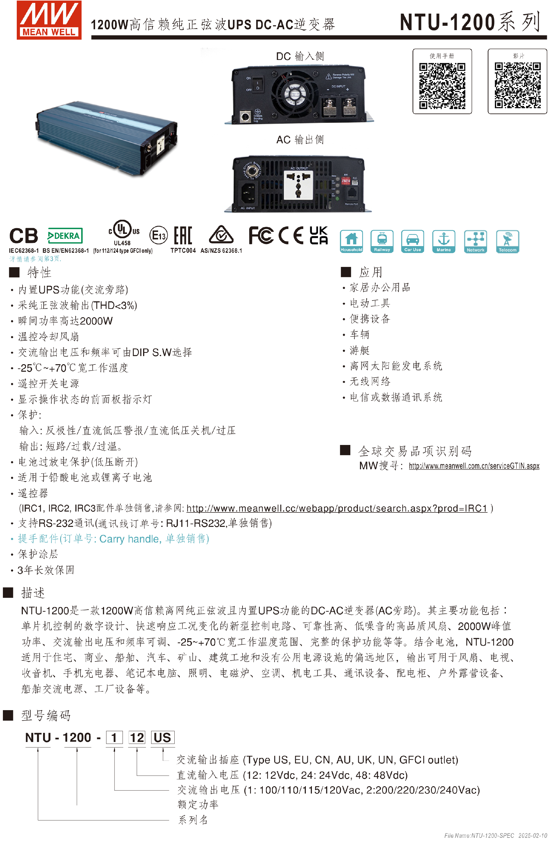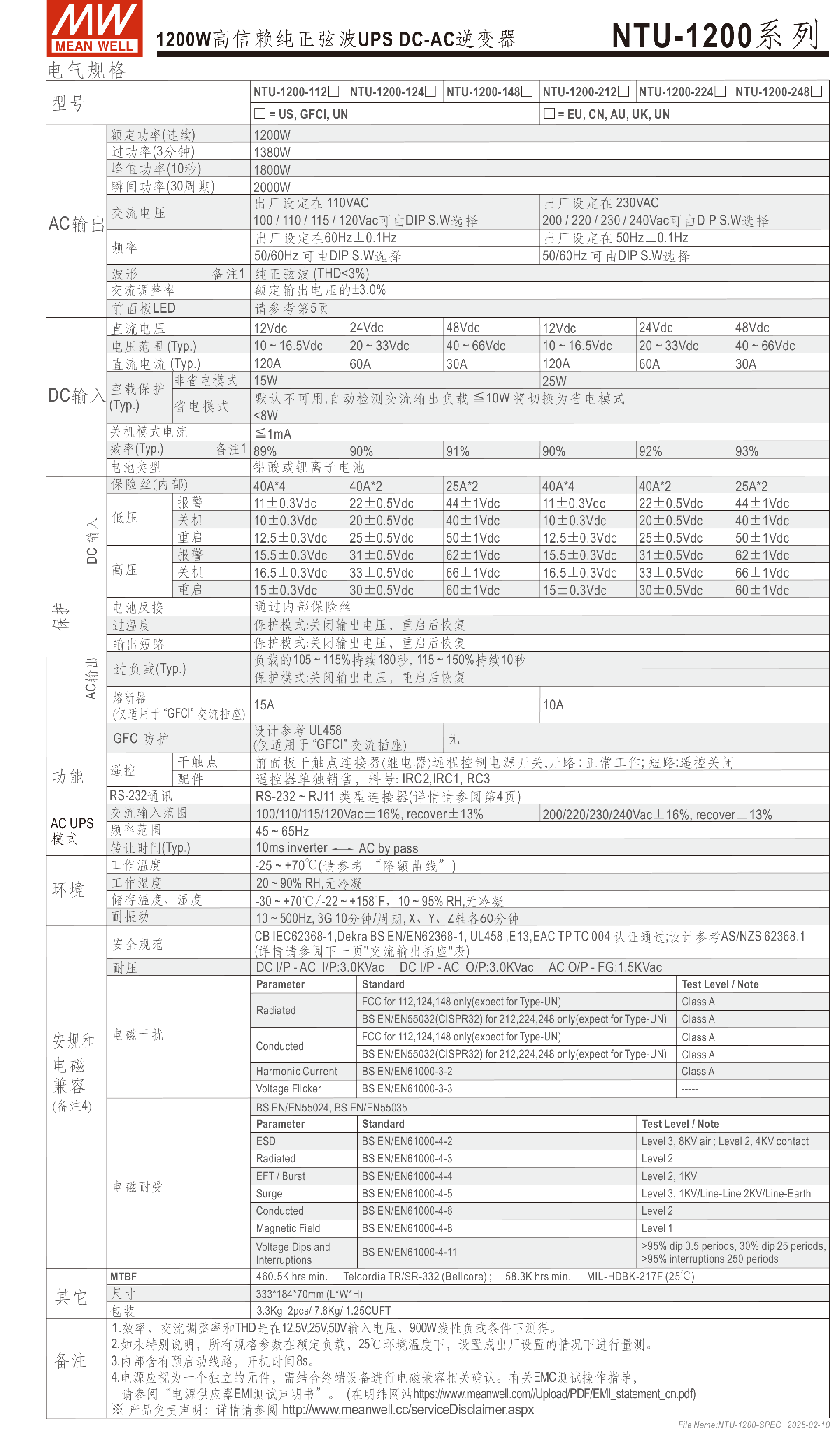 臺灣明緯NTU-1200系列DC-AC逆變器-NTU 系列-東莞市誠緯實業(yè)有限公司-
