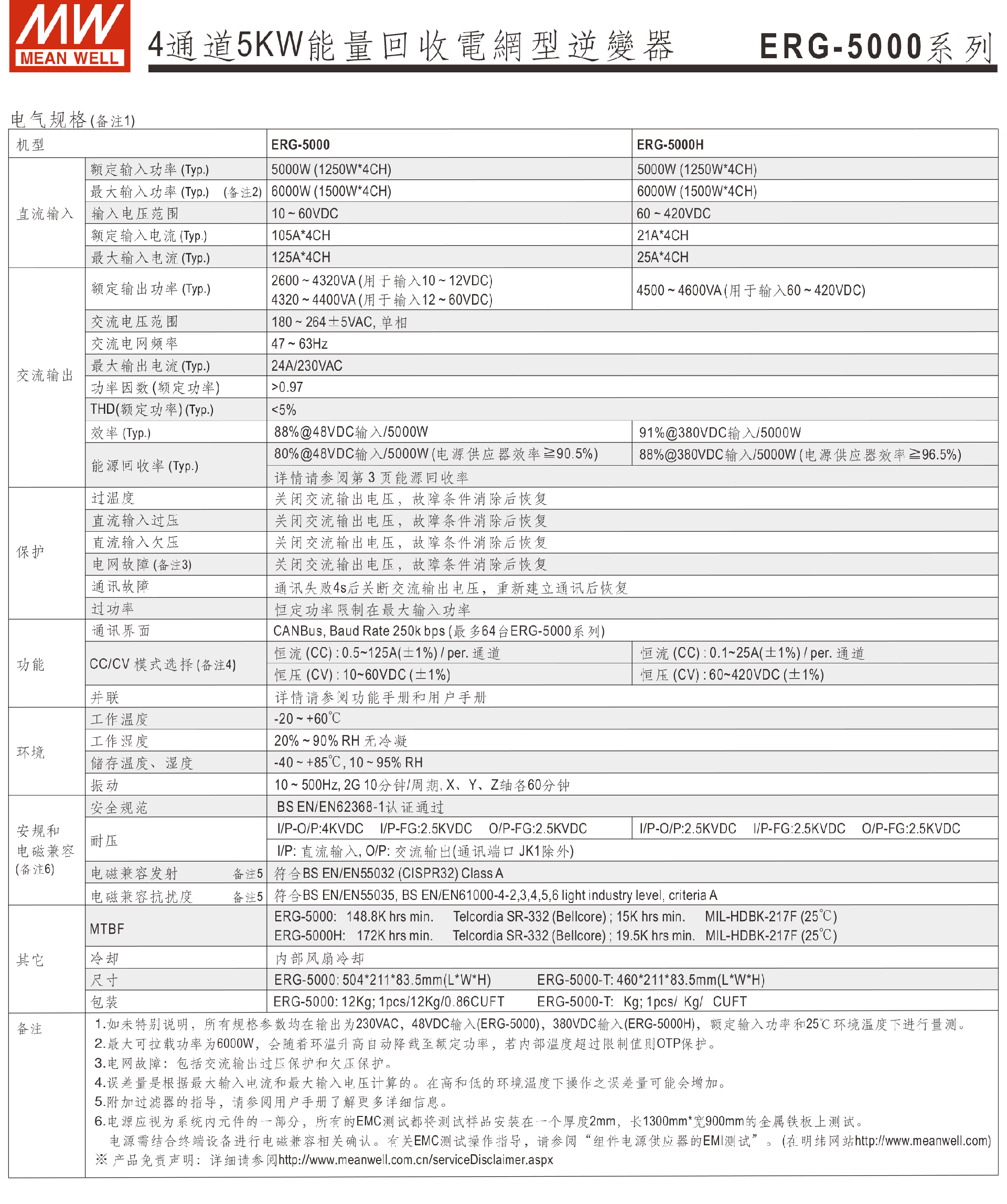 • 臺灣明緯ERG-5000系列4通道5KW能量回收電網(wǎng)型逆變器