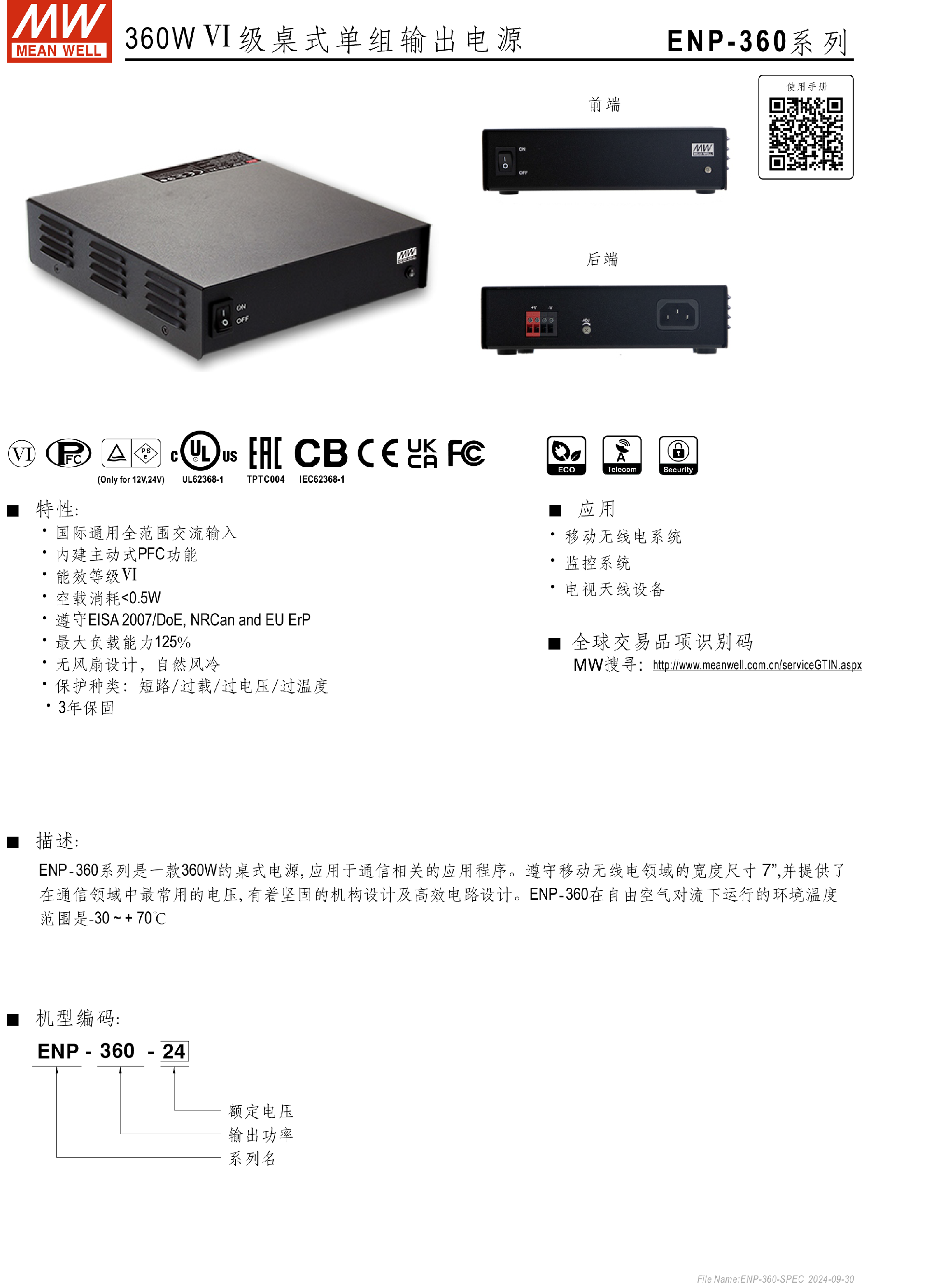 臺灣明緯ENP-360系列Ⅵ級桌式單組輸出電源-ENP/ENC系列-東莞市誠緯實業(yè)有限公司-
