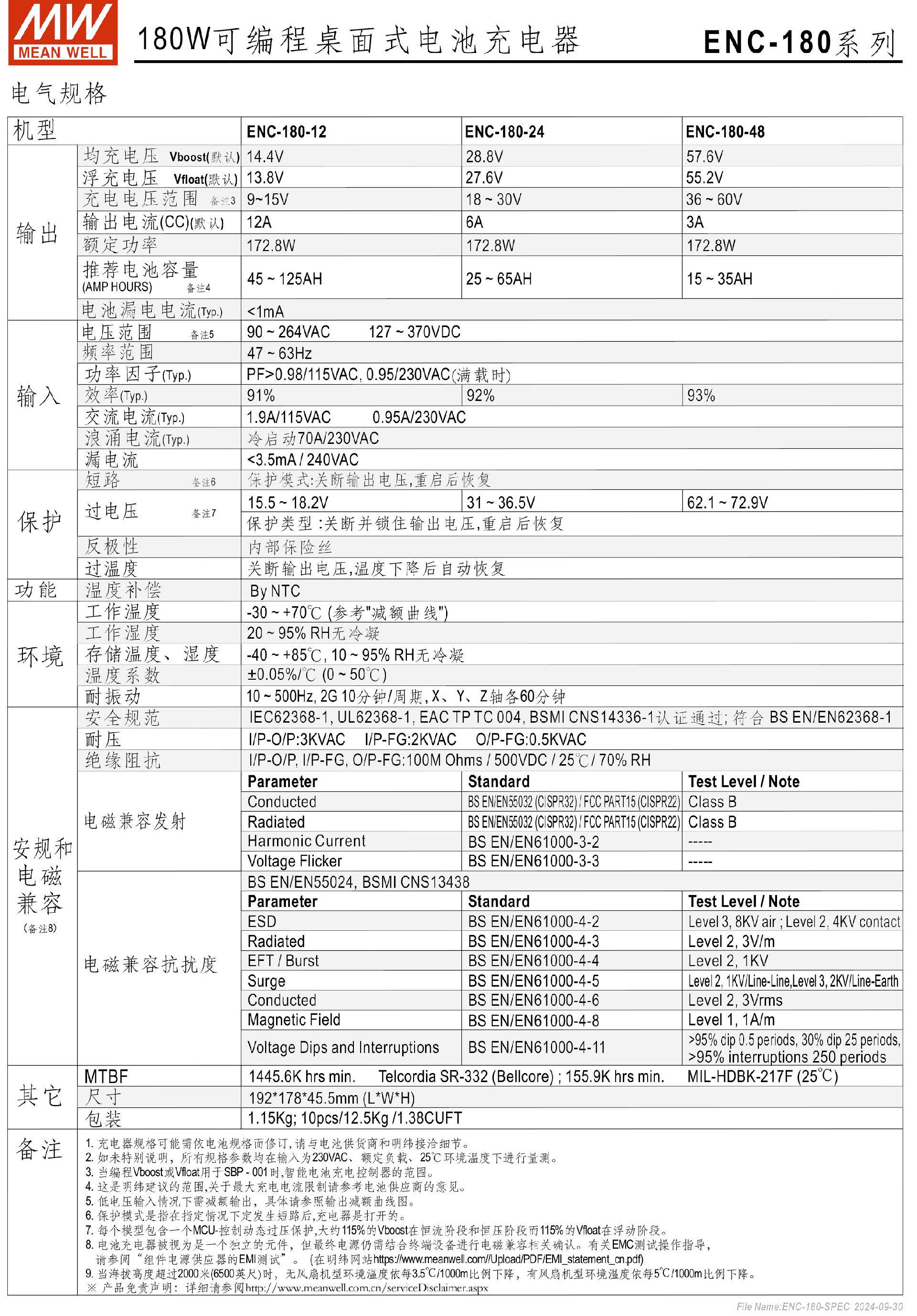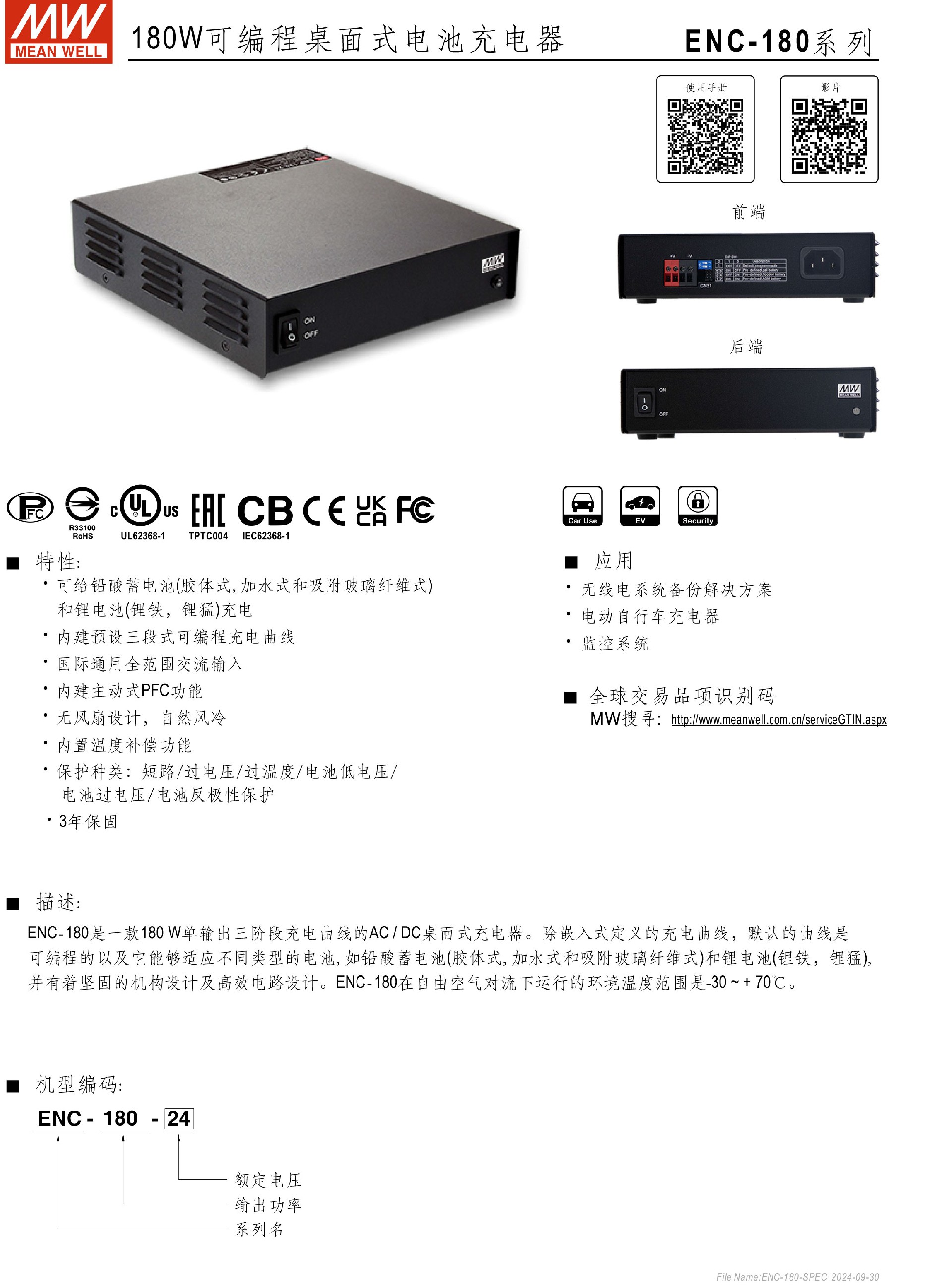 臺灣明緯ENC-180系列可編程電池充電器-ENP/ENC系列-東莞市誠緯實業(yè)有限公司-