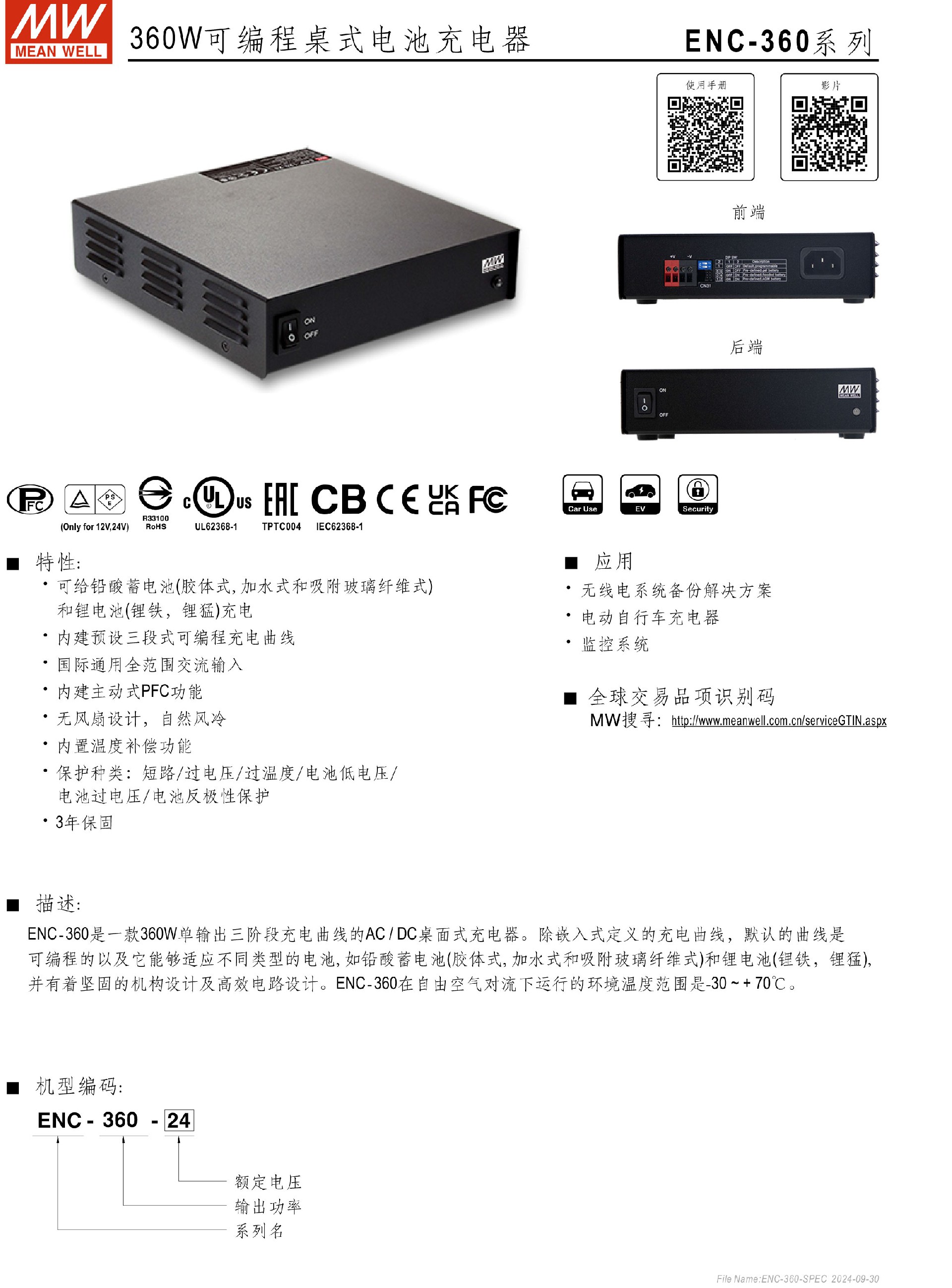 臺(tái)灣明緯ENC-240系列可編程電池充電器