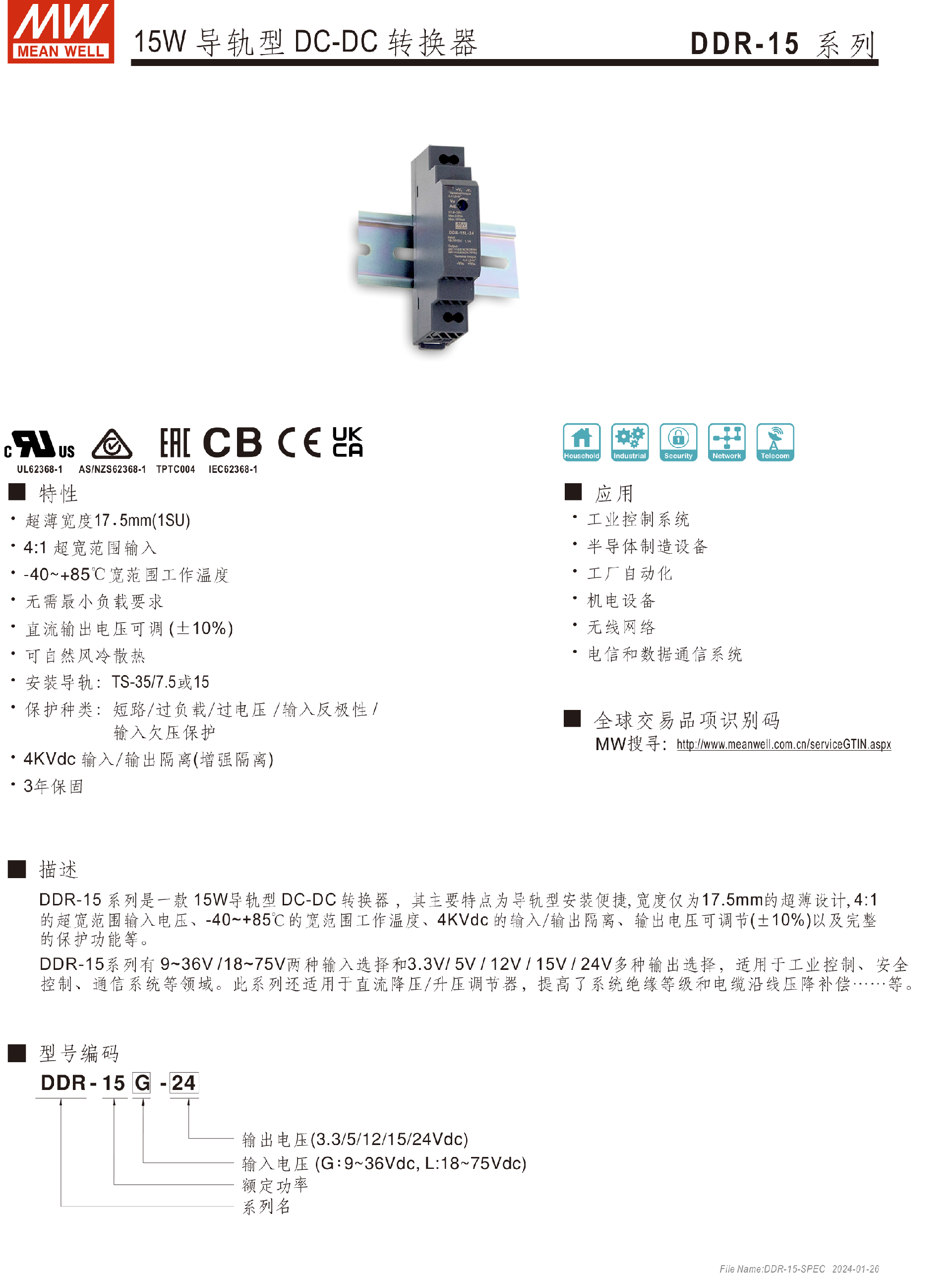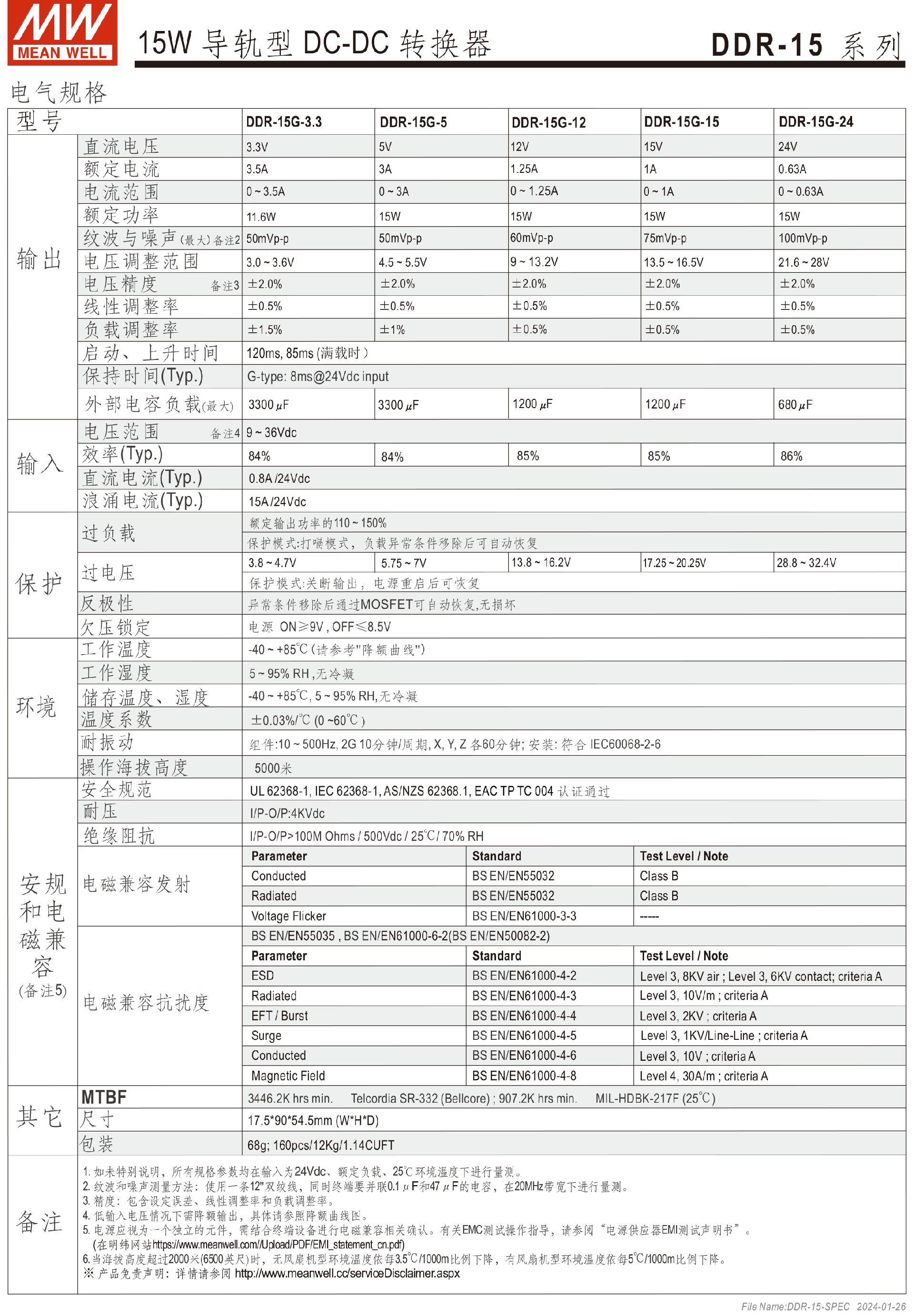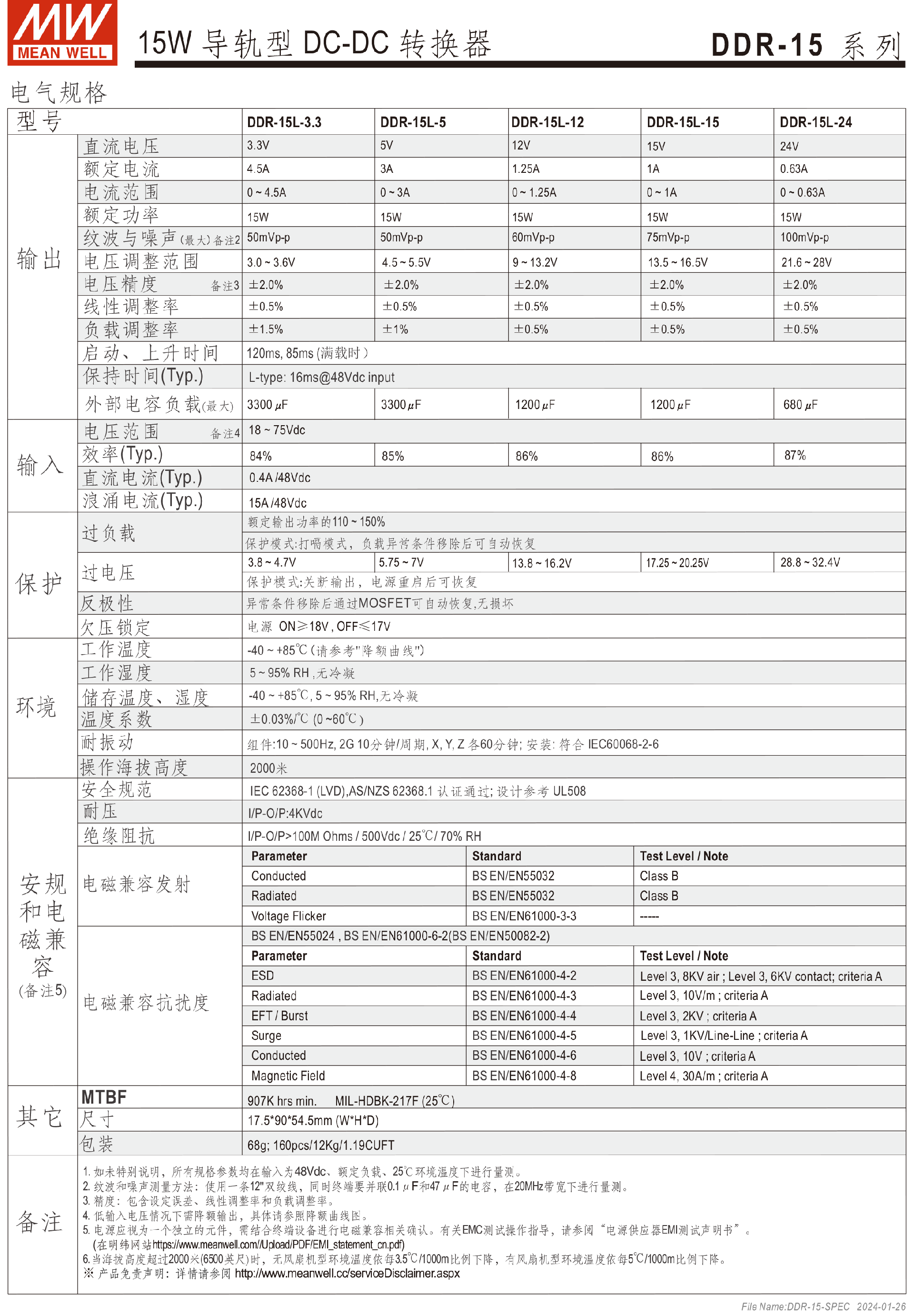 明緯電源DDR-15系列15W導軌型DC-DC轉換器-DDR系列-東莞市誠緯實業(yè)有限公司-