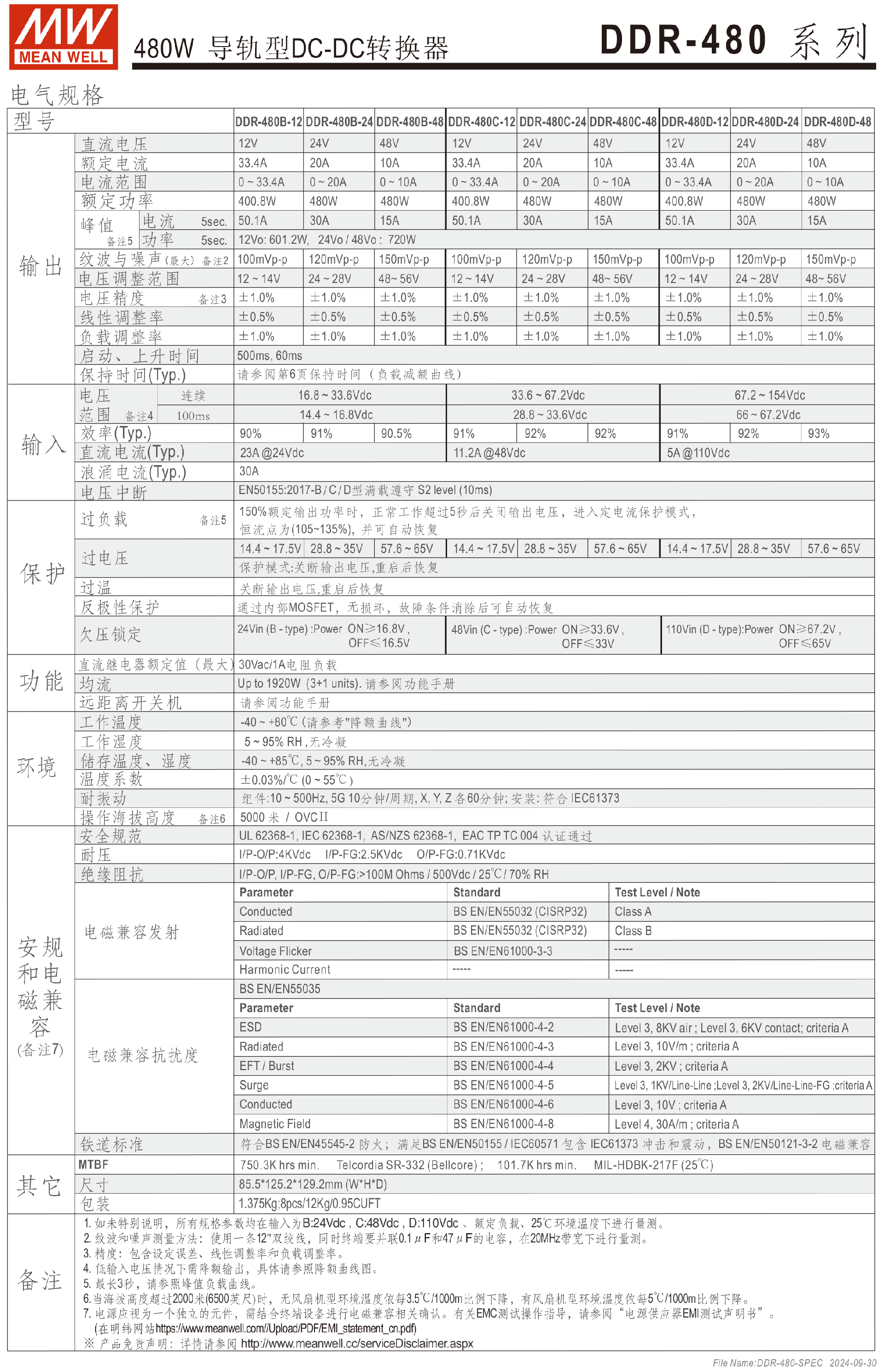 明緯電源DDR-120系列120W導(dǎo)軌型DC-DC轉(zhuǎn)換器