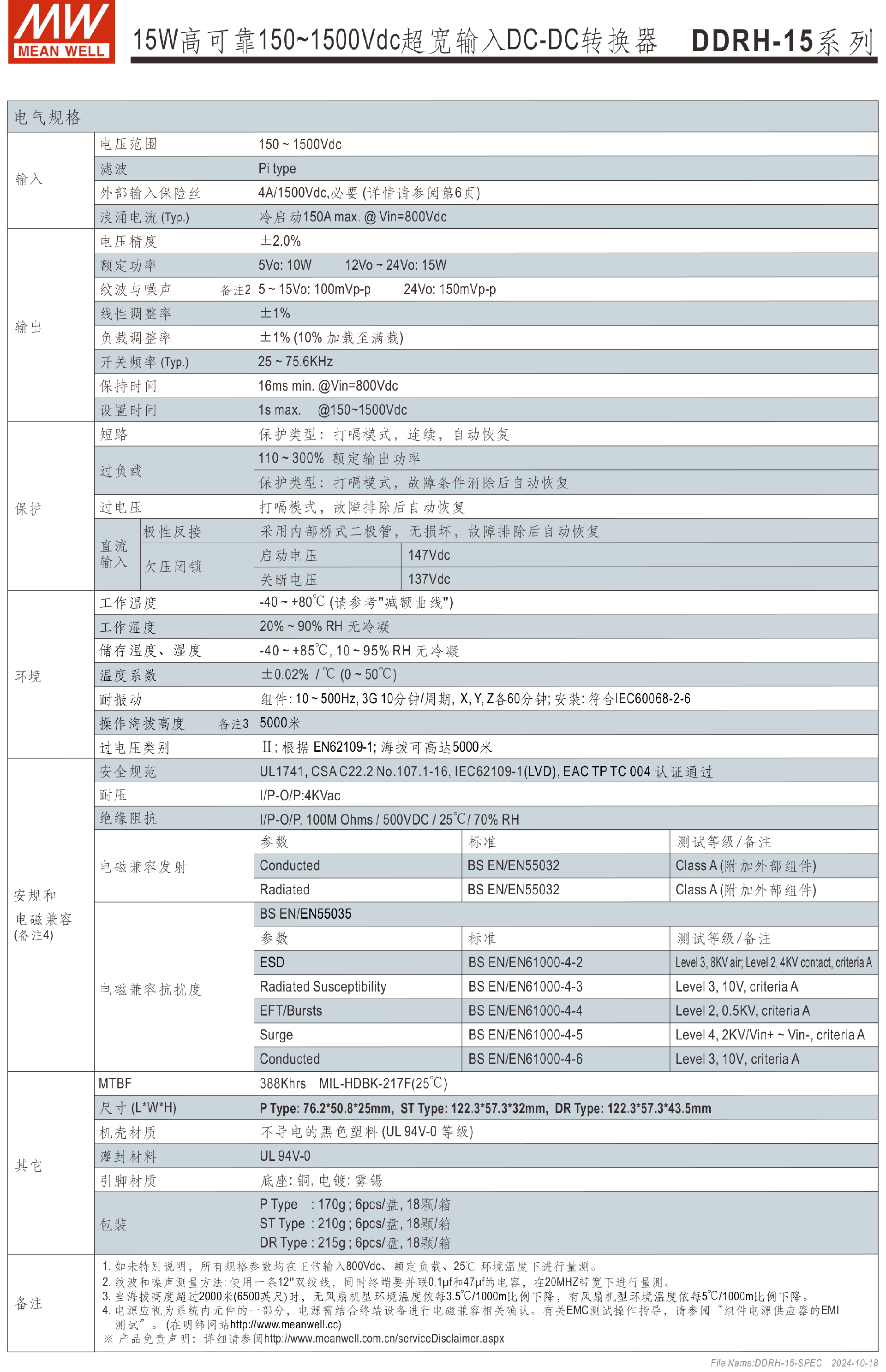 明緯電源DDRH-120系列250~1500Vdc超寬輸入DC-DC轉(zhuǎn)換器