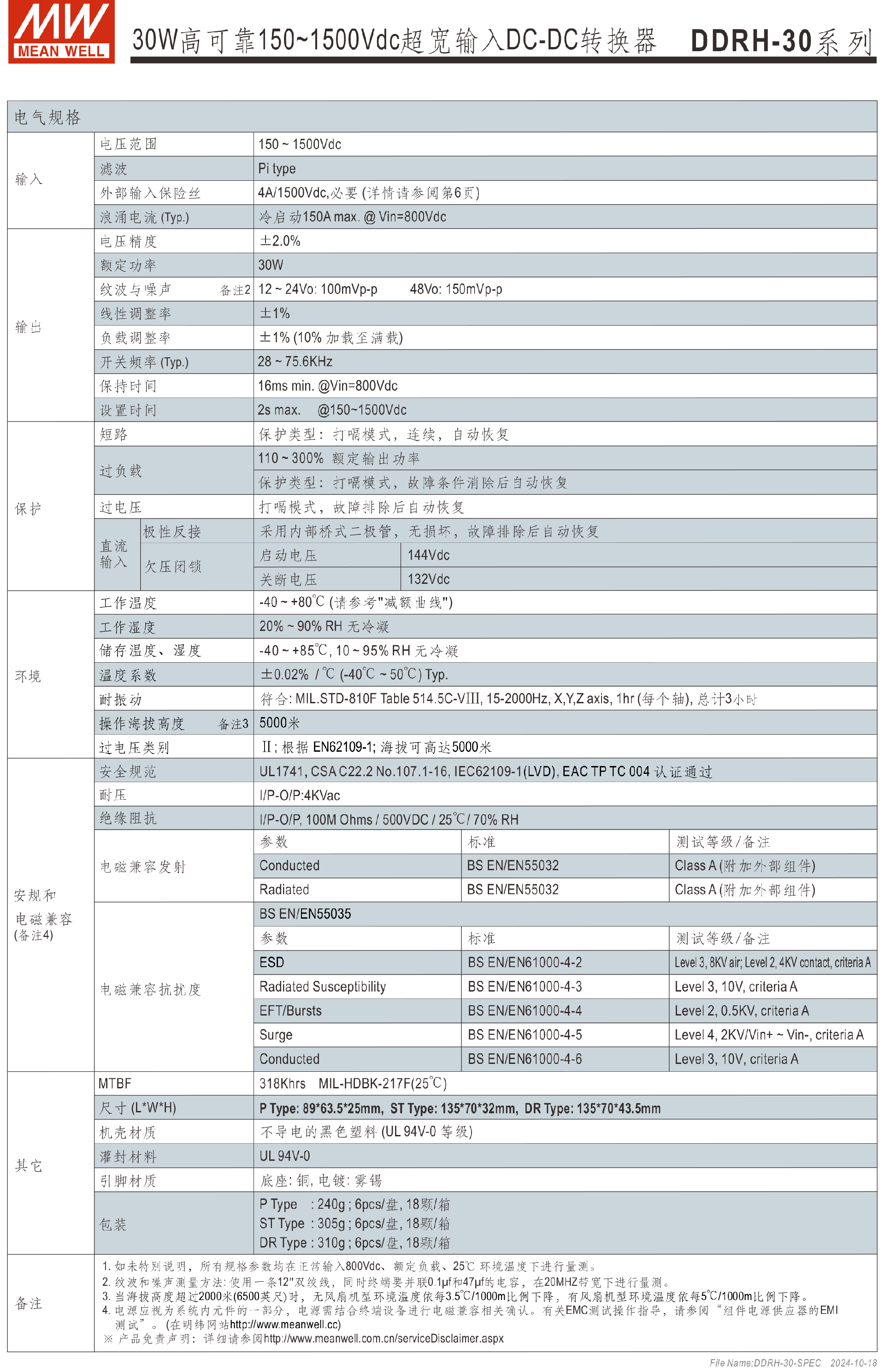 明緯電源DDRH-240系列250~1500Vdc超寬輸入DC-DC轉(zhuǎn)換器