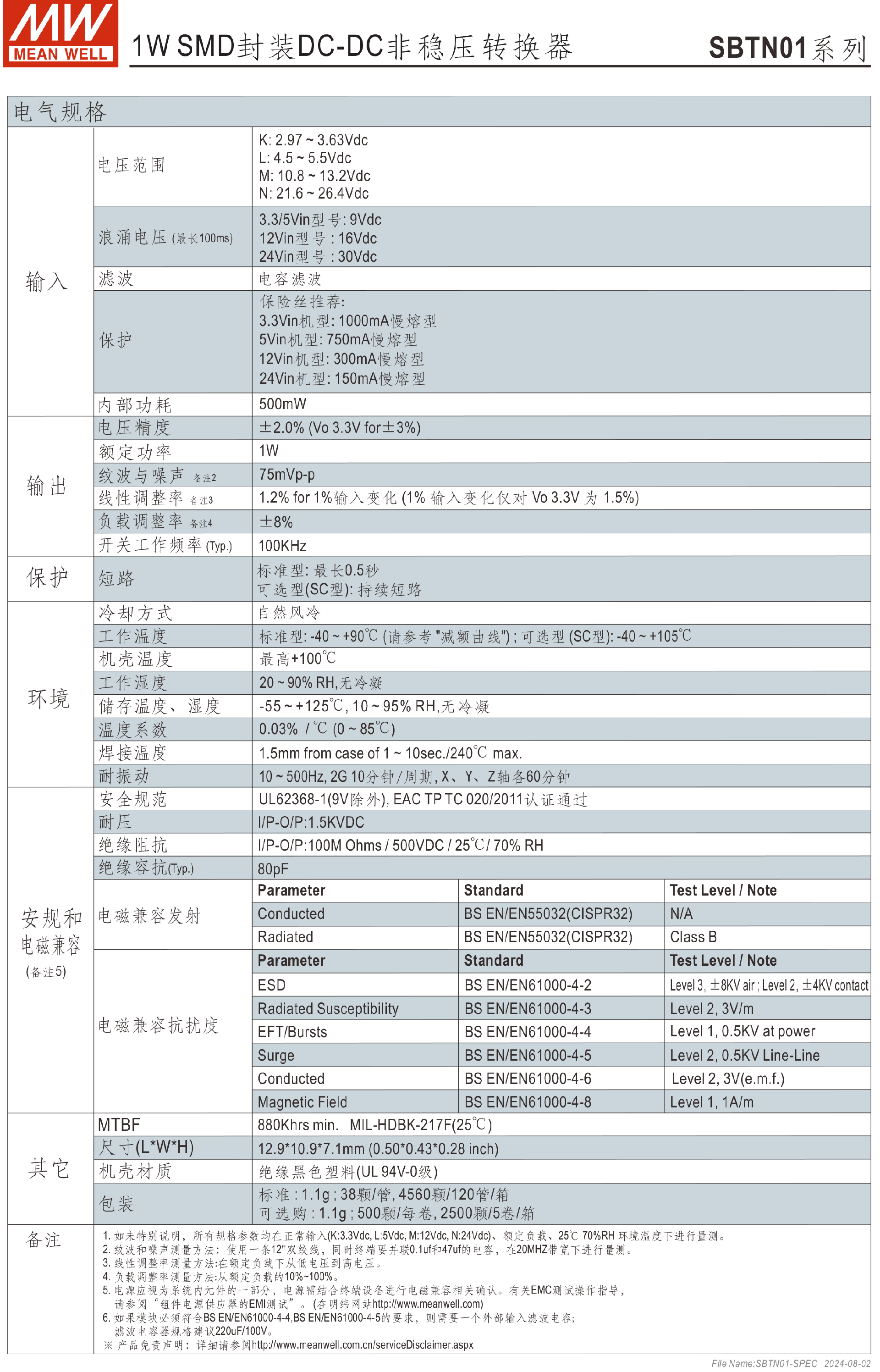 明緯電源SBTN01-N系列1W SMD封裝DC-DC非穩(wěn)壓轉(zhuǎn)換器