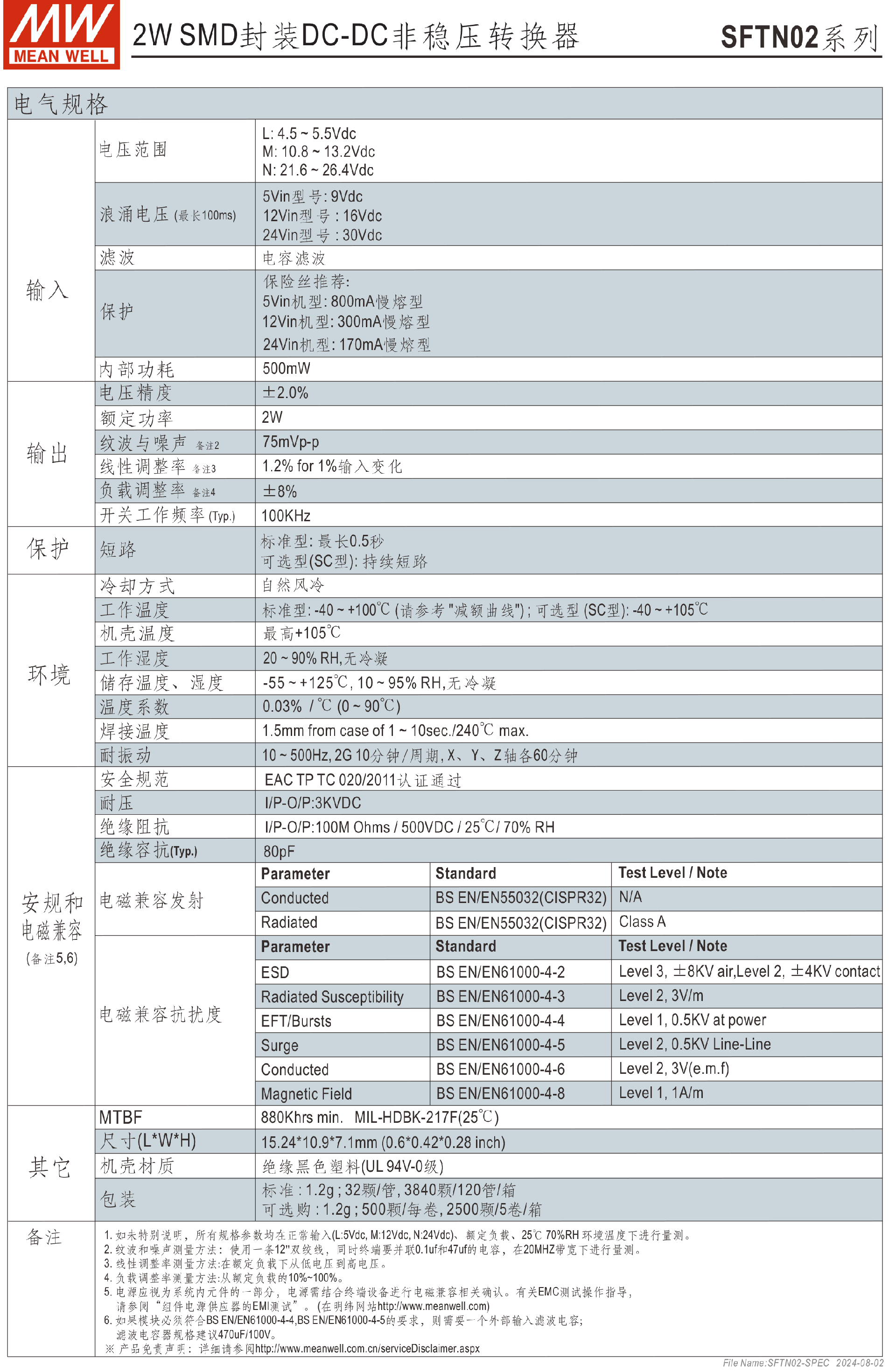 明緯電源DETN02系列2W SMD封裝DC-DC非穩(wěn)壓轉(zhuǎn)換器