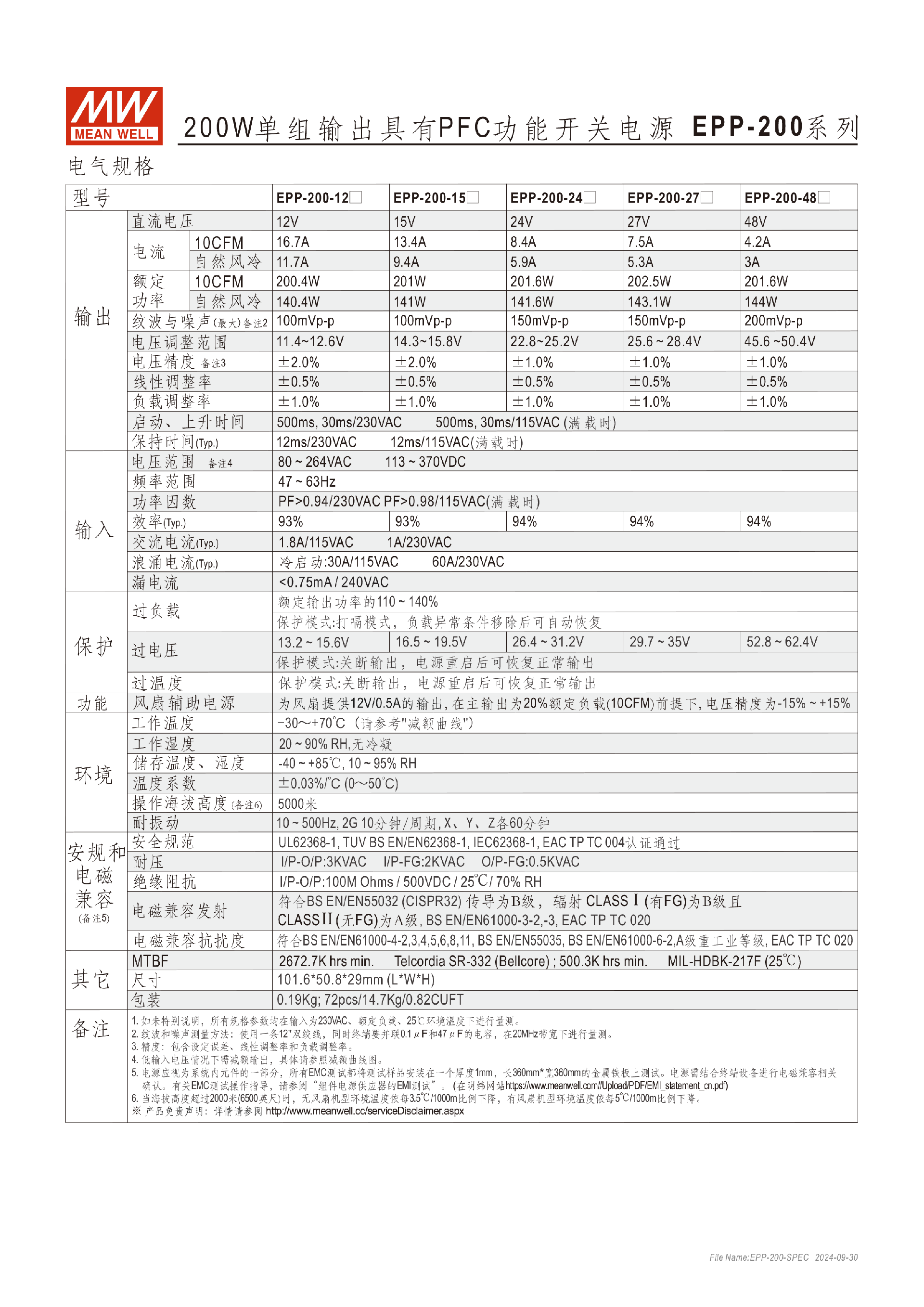 臺灣明緯EPP-500系列500W單組輸出開關(guān)電源