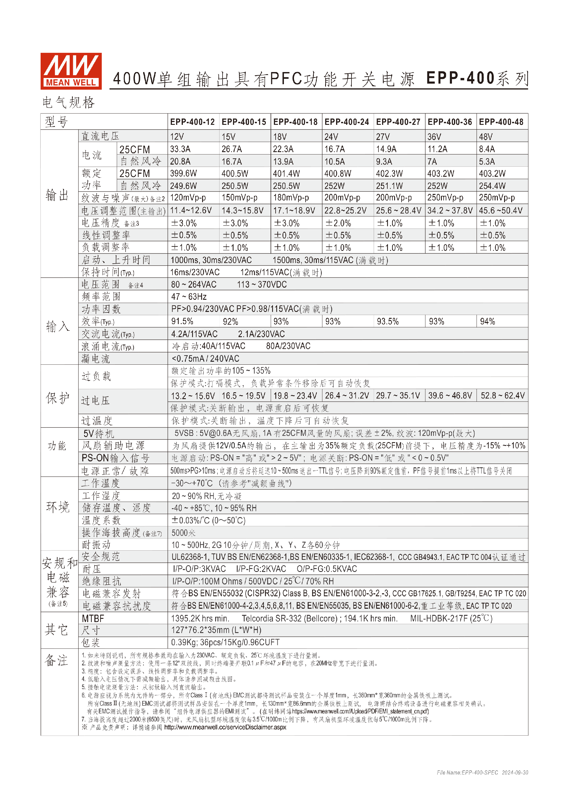 臺灣明緯EPP-400系列400W單組輸出開關電源-工業(yè)用-東莞市誠緯實業(yè)有限公司-