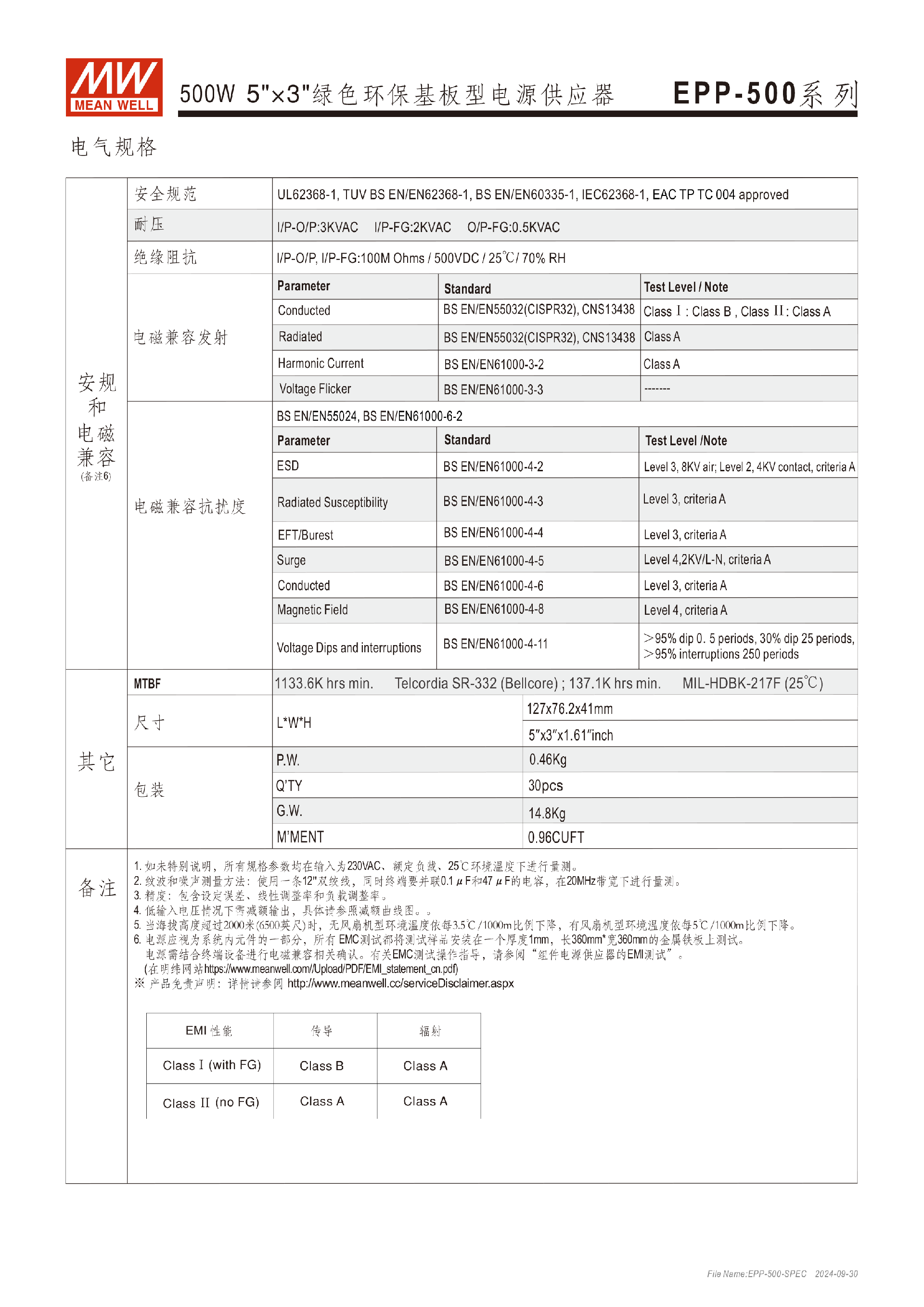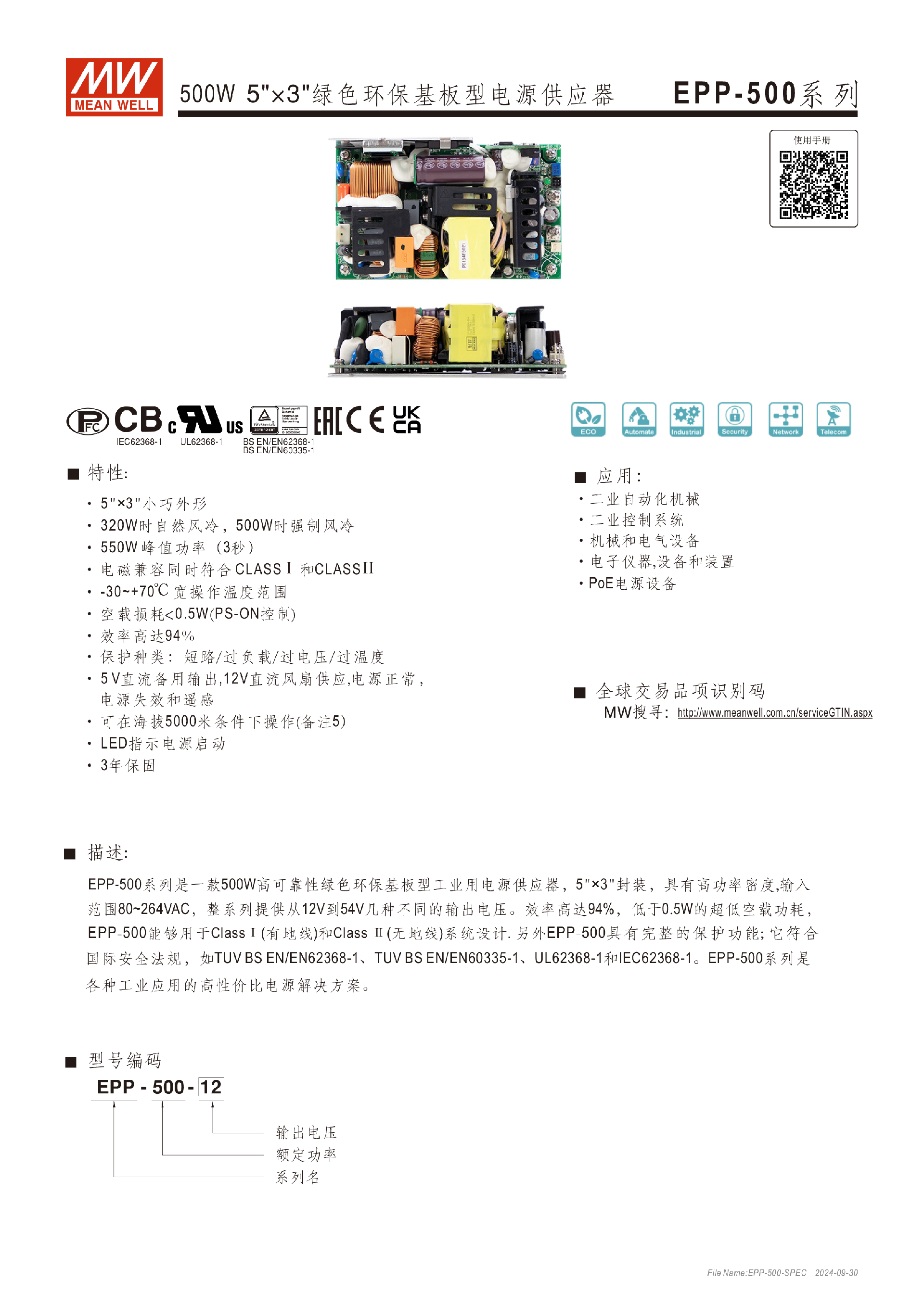 臺灣明緯EPP-500系列500W單組輸出開關(guān)電源-工業(yè)用-東莞市誠緯實業(yè)有限公司-