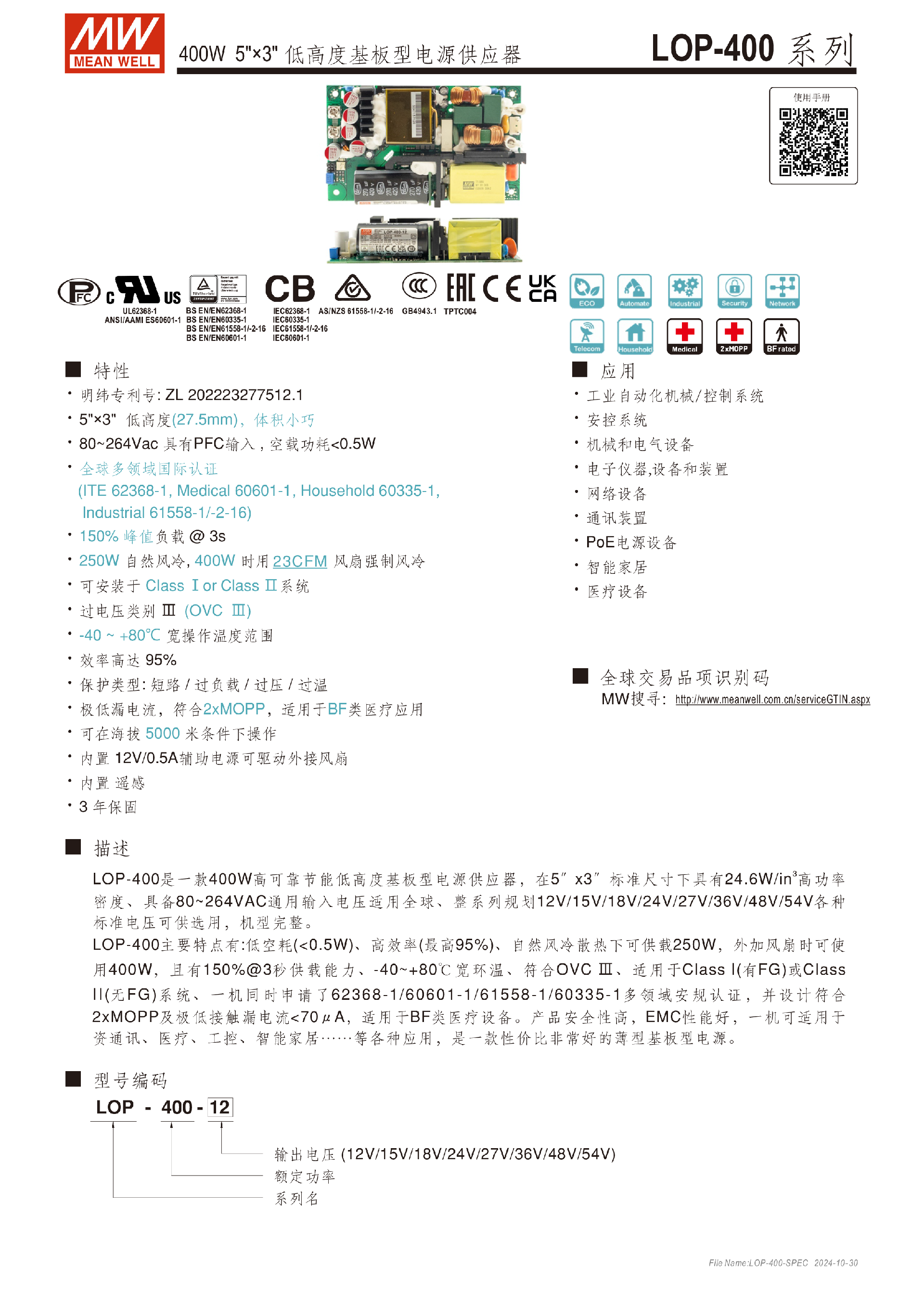 臺(tái)灣明緯LOP-200系列基板型電源供應(yīng)器醫(yī)療用電源