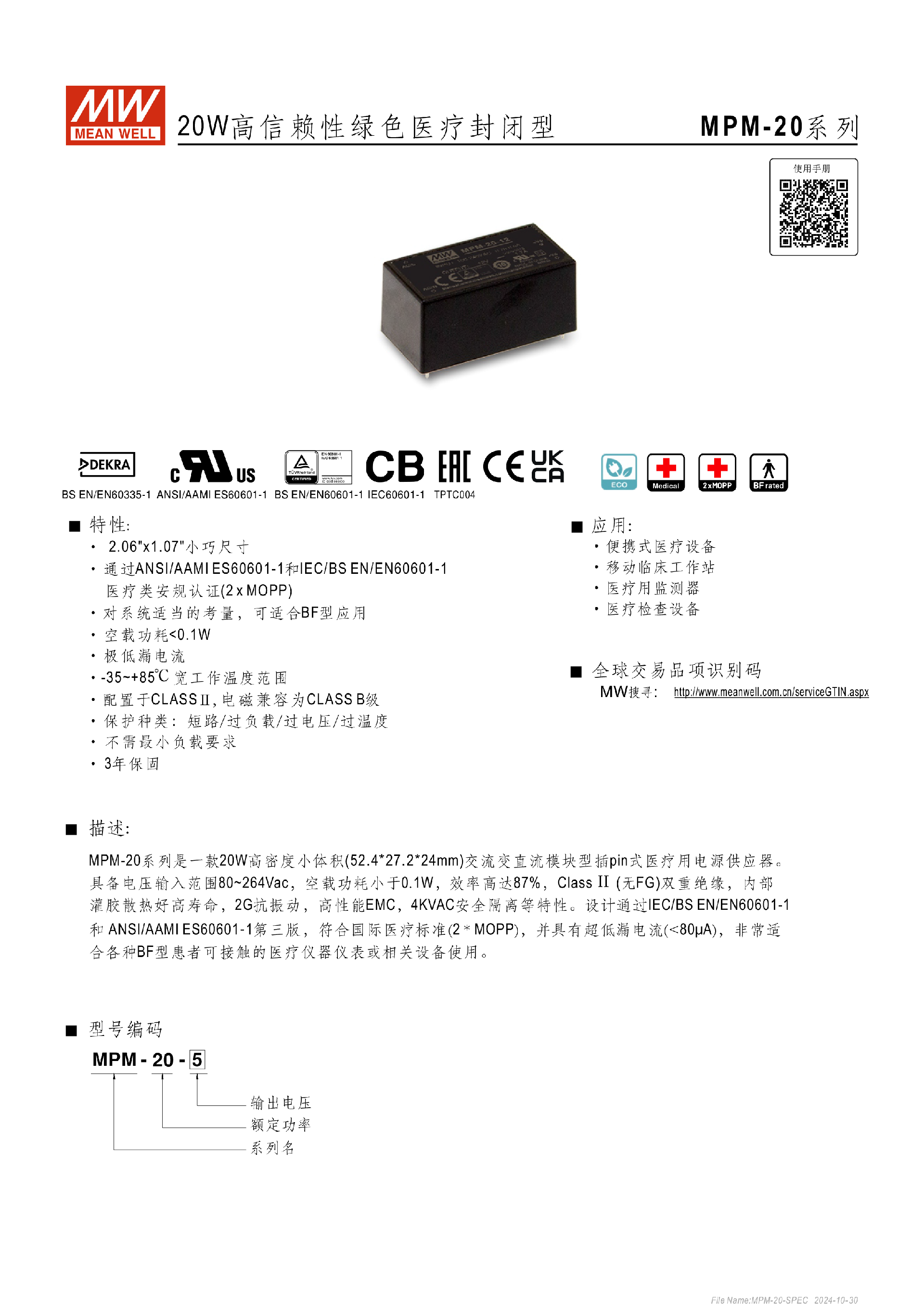臺(tái)灣明緯MPM-20系列醫(yī)療封閉型電源-醫(yī)療用-東莞市誠(chéng)緯實(shí)業(yè)有限公司-