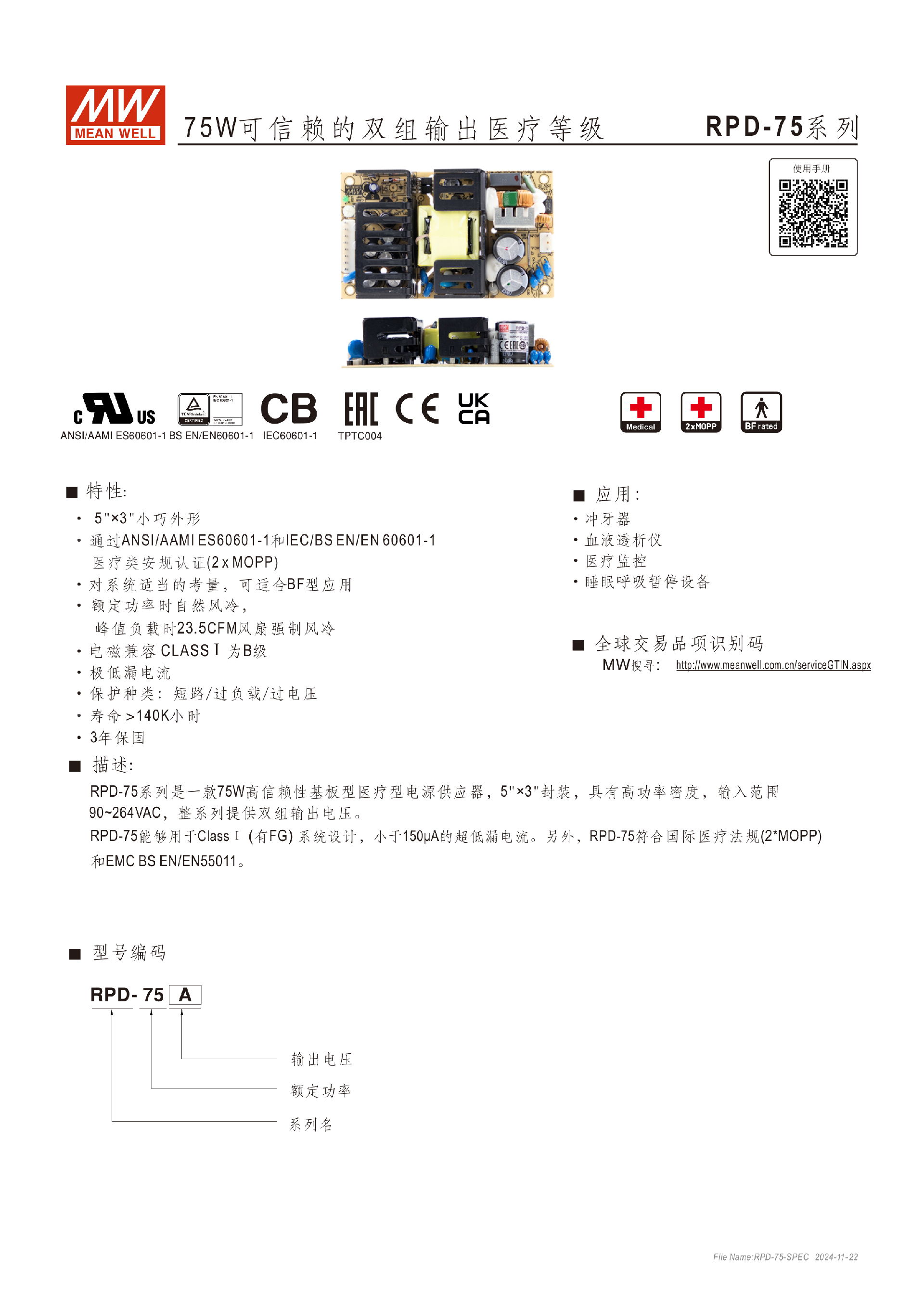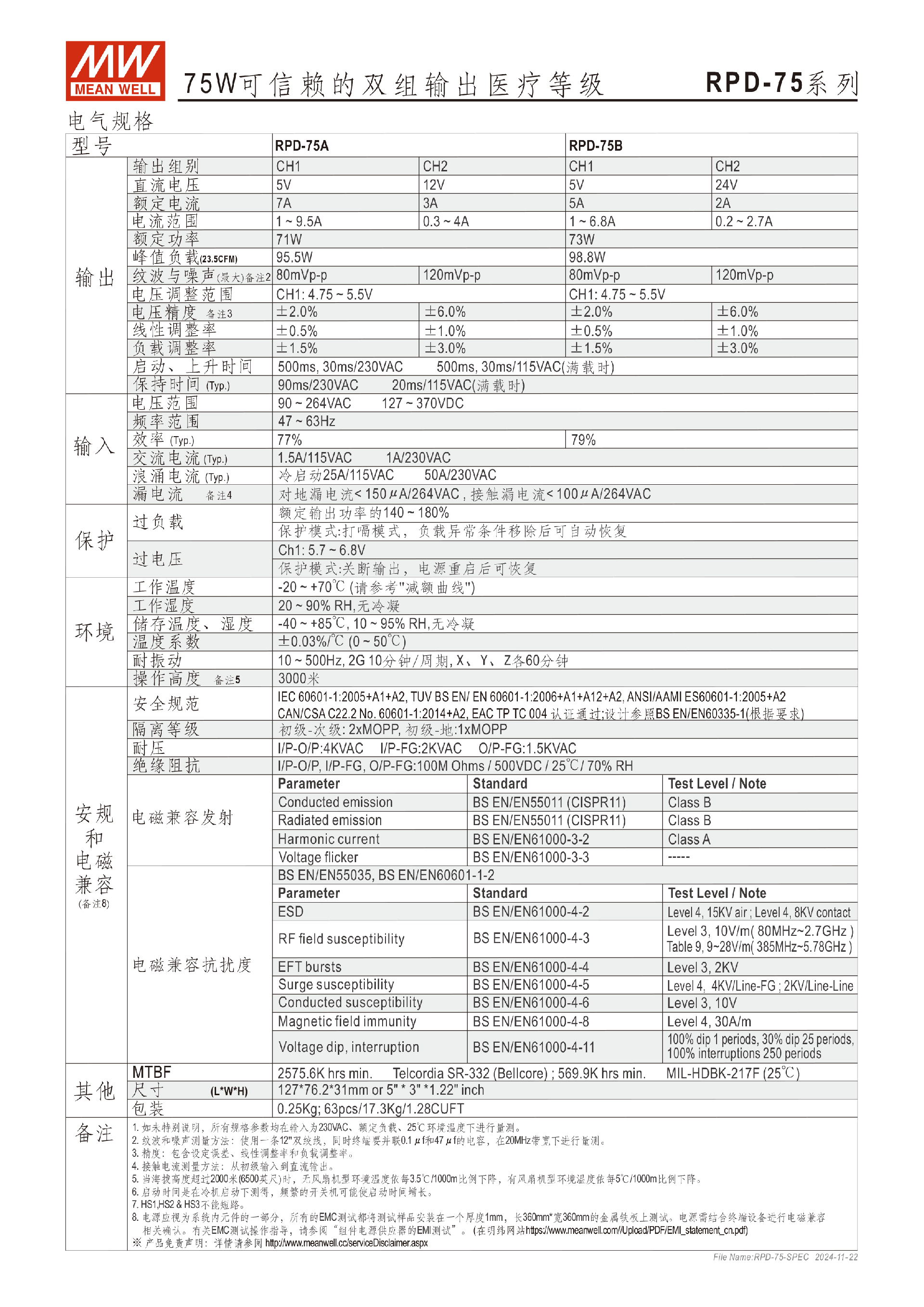 臺(tái)灣明緯RPD-75系列75W雙組輸出醫(yī)療型電源-醫(yī)療用-東莞市誠緯實(shí)業(yè)有限公司-