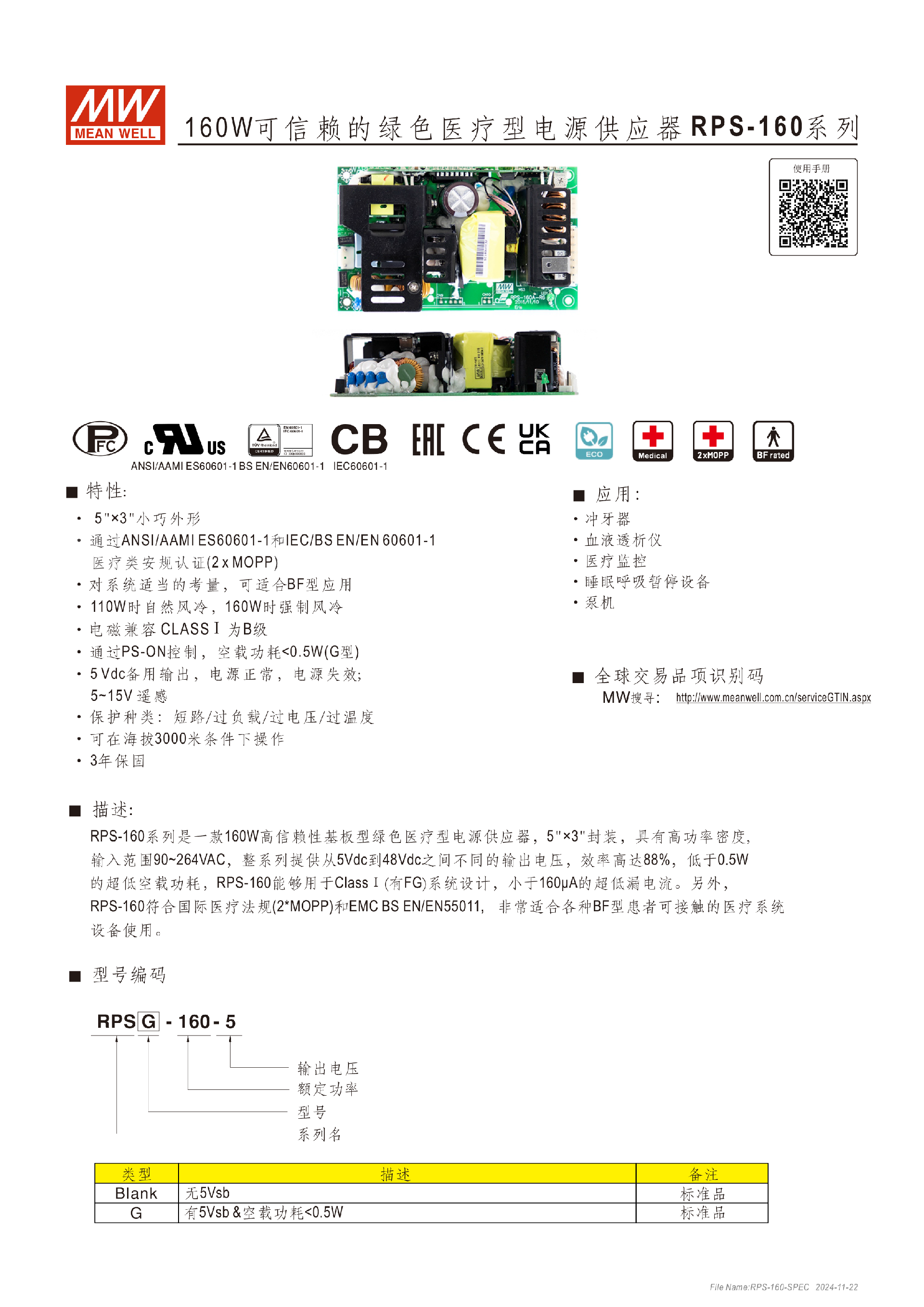 臺(tái)灣明緯RPS-120系列120W醫(yī)療型電源供應(yīng)器