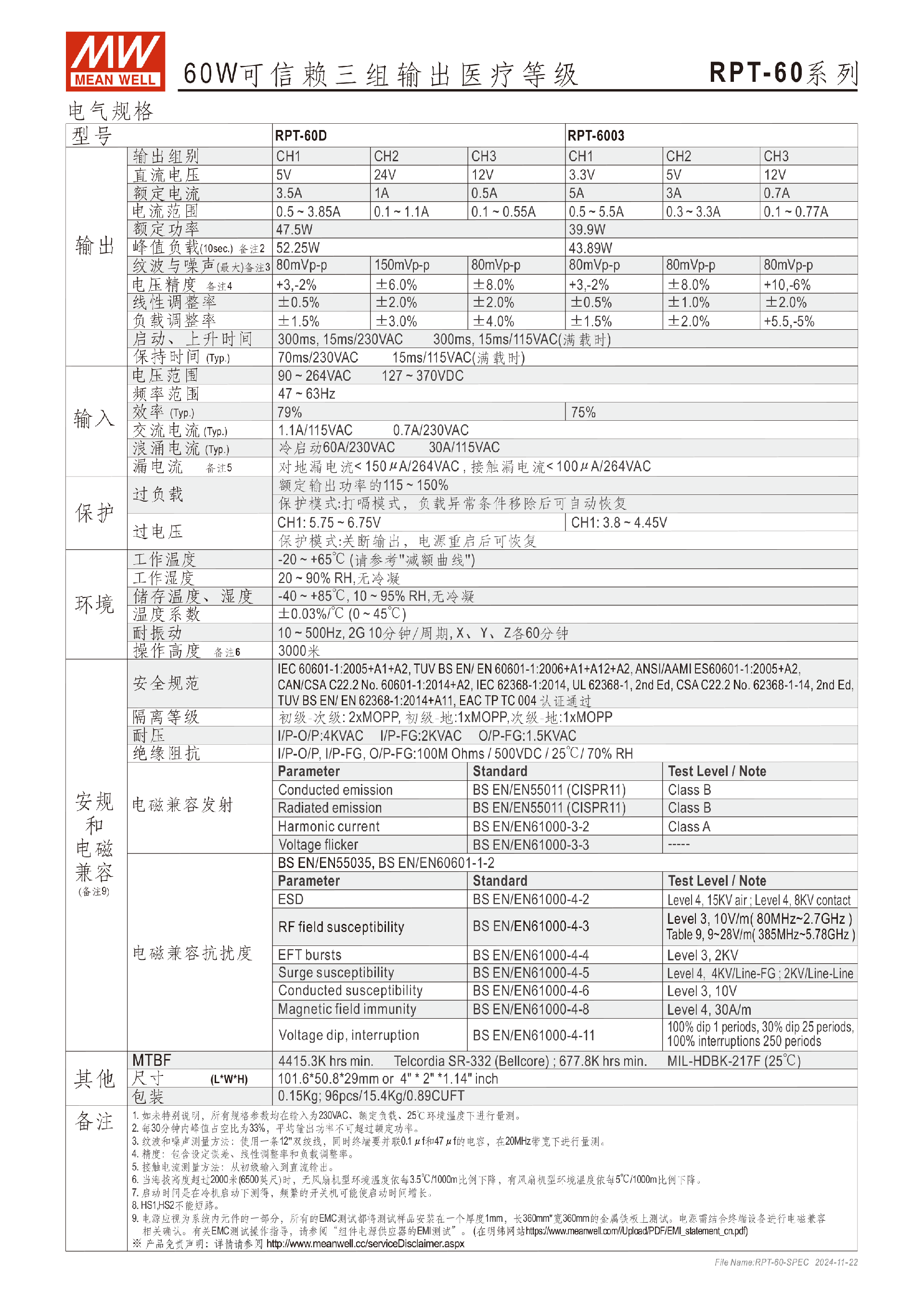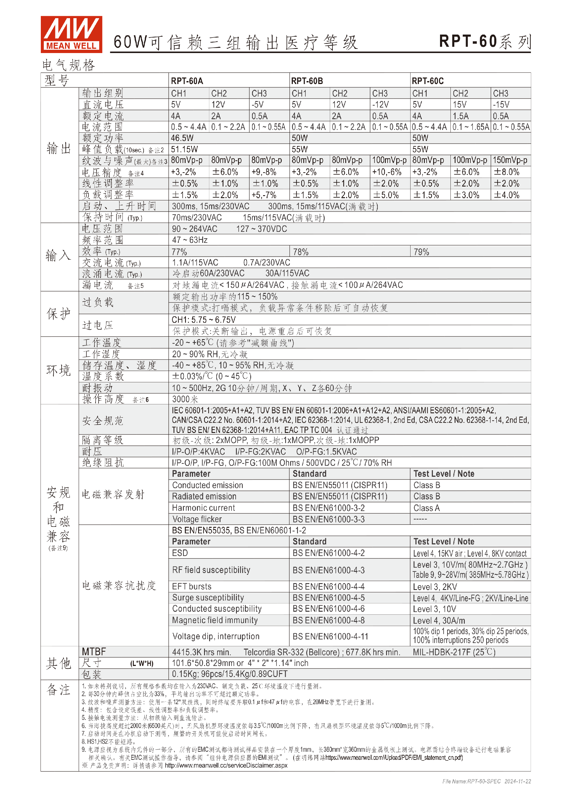 臺(tái)灣明緯RPT-75系列三組輸出醫(yī)療電源供應(yīng)器